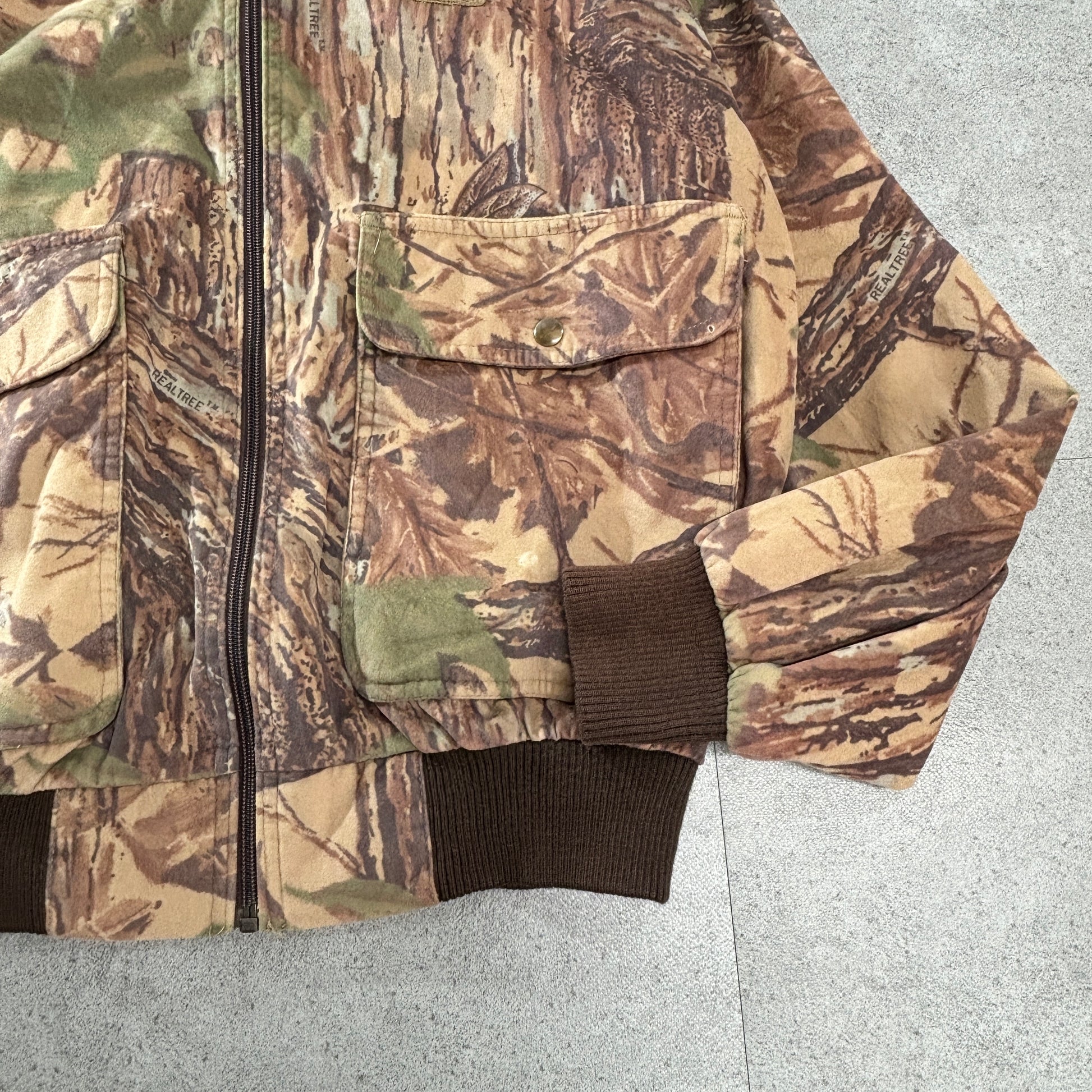 90s〜00s Cabela’s カベラス 加工ツリーカモ ハンティング ボンバージャケット L/REG カナダ製 リブ付きジップブルゾン OUTDOOR GEAR 迷彩 アウトドア