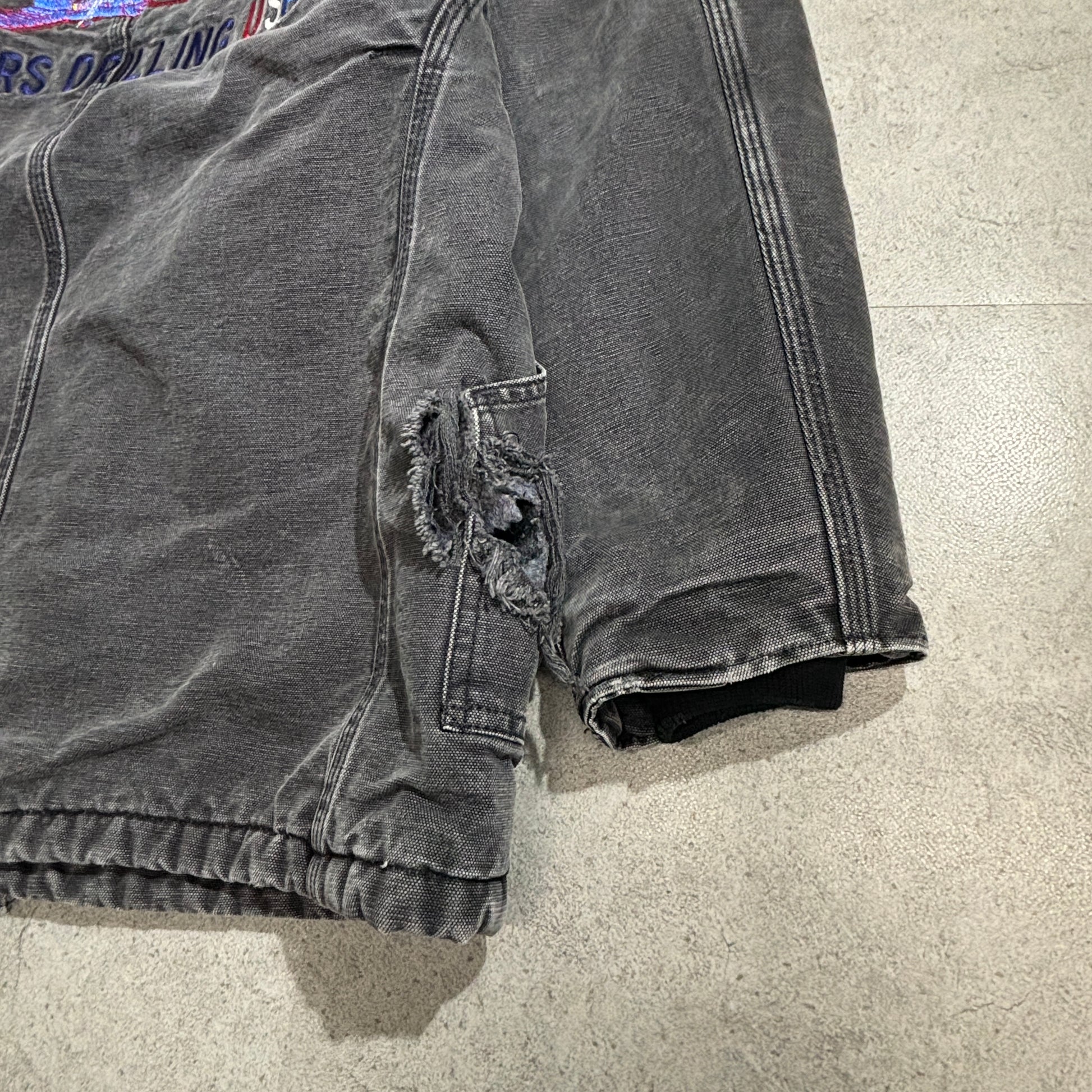 Carhartt ダックカバーオールジャケット ブラック ワーク刺繍 BP Amoco × Nabors Drilling USA 裏地ブランケット 90s