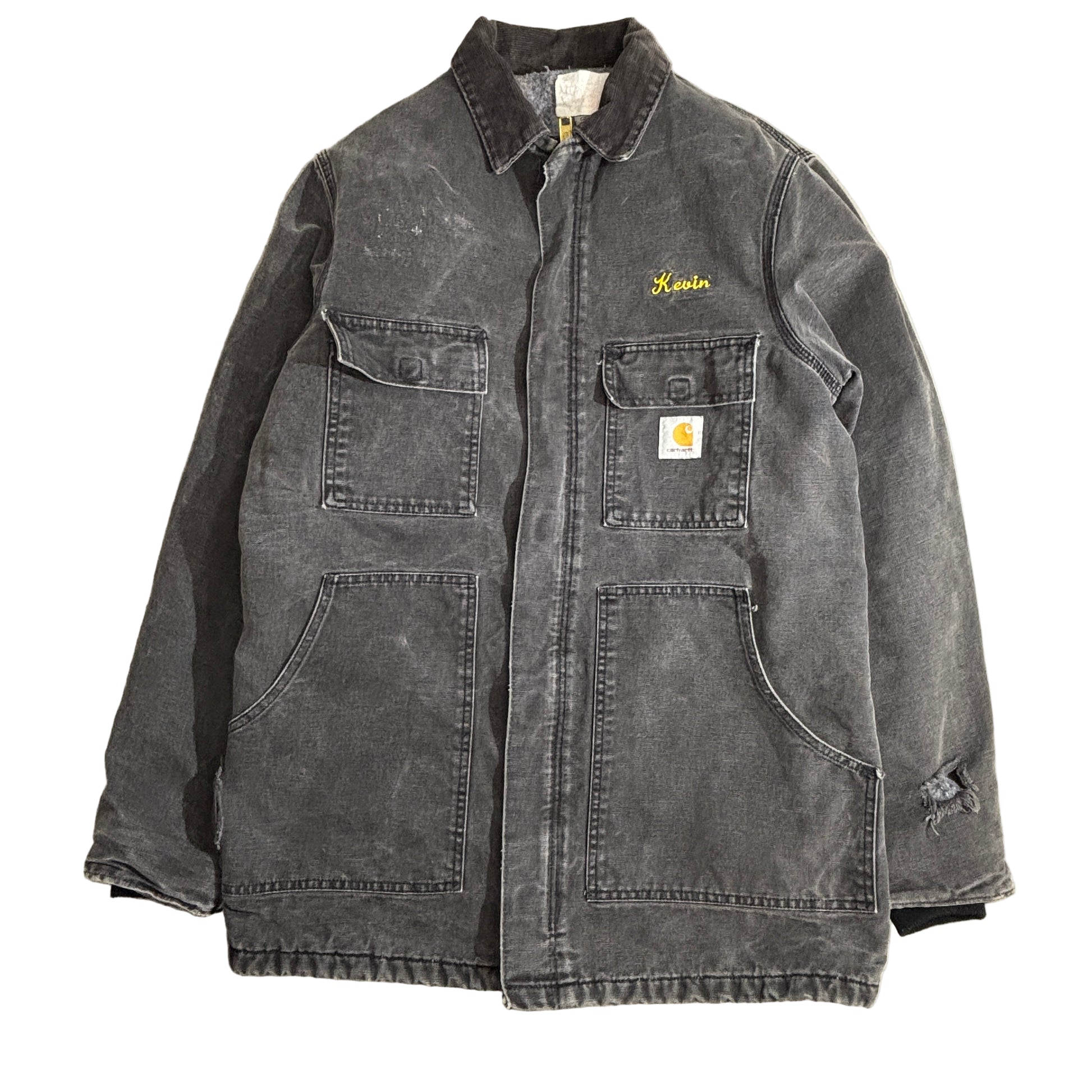 フロントは定番の4ポケット仕様で、胸には「Kevin」のネーム刺繍入り。