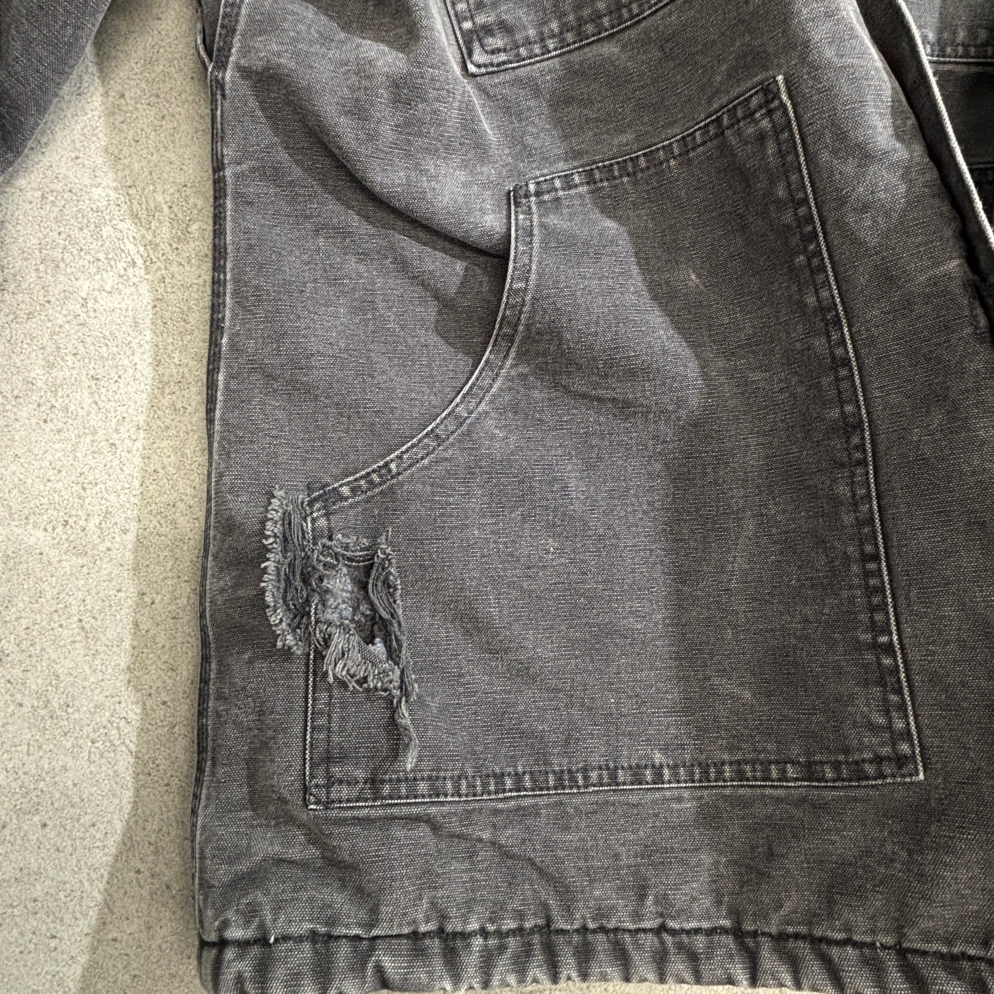 経年変化によるフェード感、袖口の擦れ、細かなダメージが古着らしい無骨な雰囲気を演出しています。