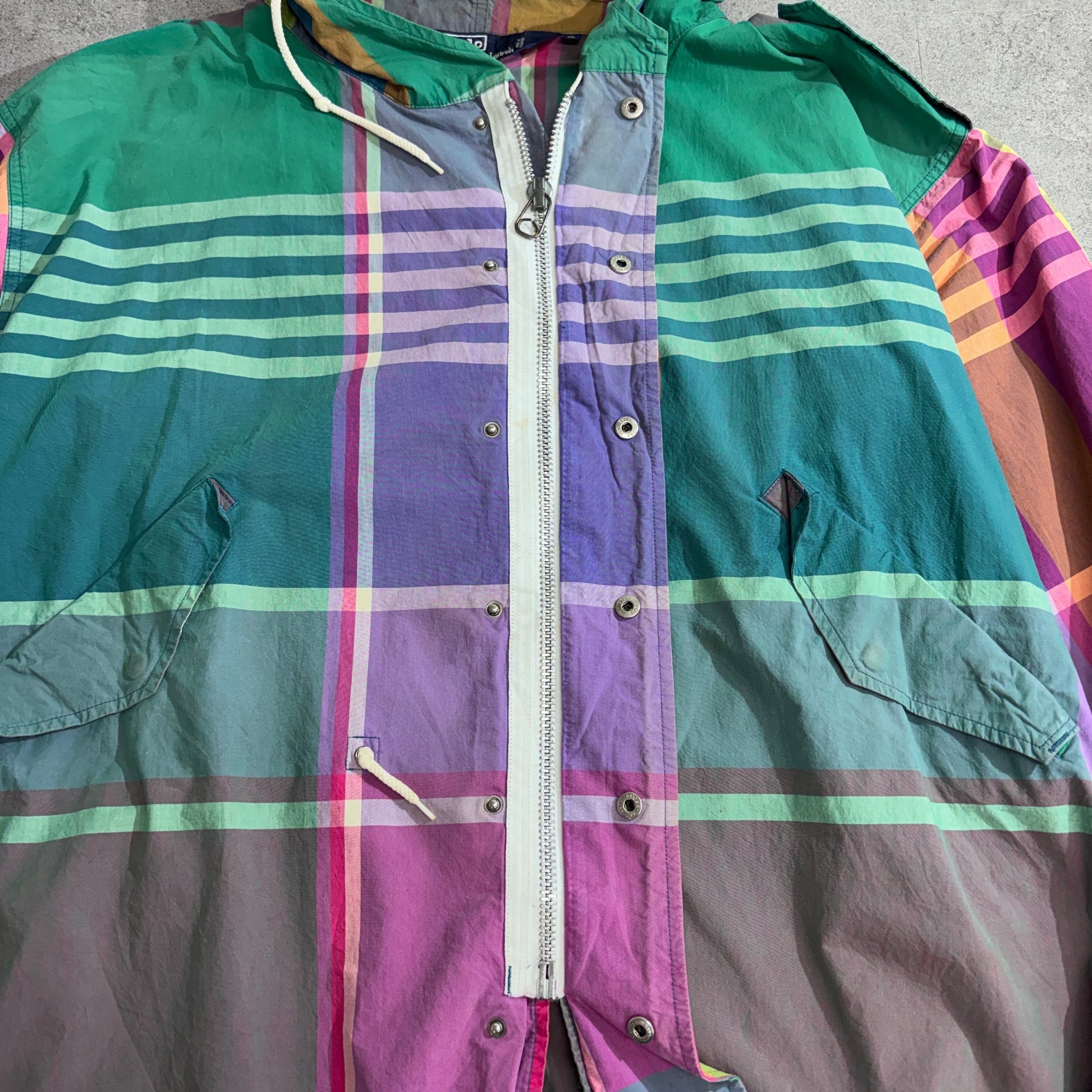 1990年代製のマルチカラーチェック・コットンフードジャケットが入荷。