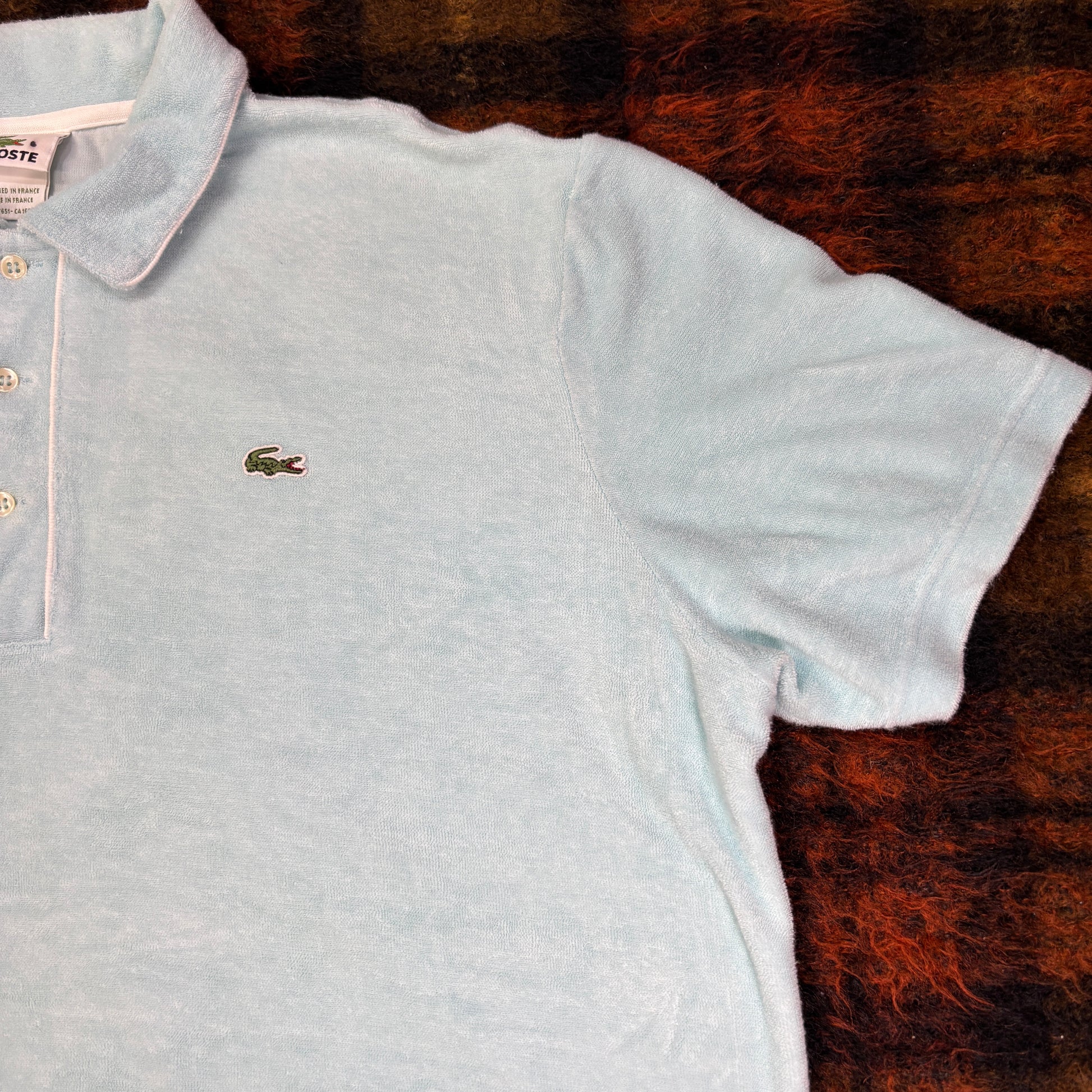 90s フランス製 LACOSTE ラコステ タオル地 ポロシャツ パイル素材 サックスブルー XL相当