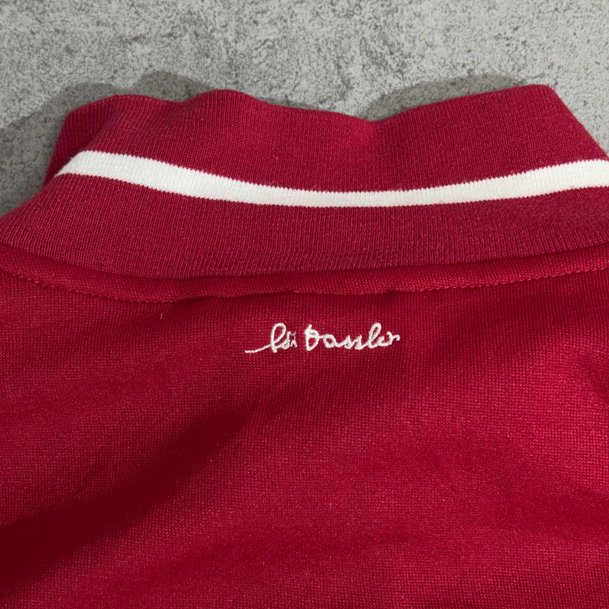 【adidas】Adolf Dassler 刺繍 トラックジャケット レッド×ホワイト Lサイズ カンボジア製 アディダス トラックトップ ジャージ 古着