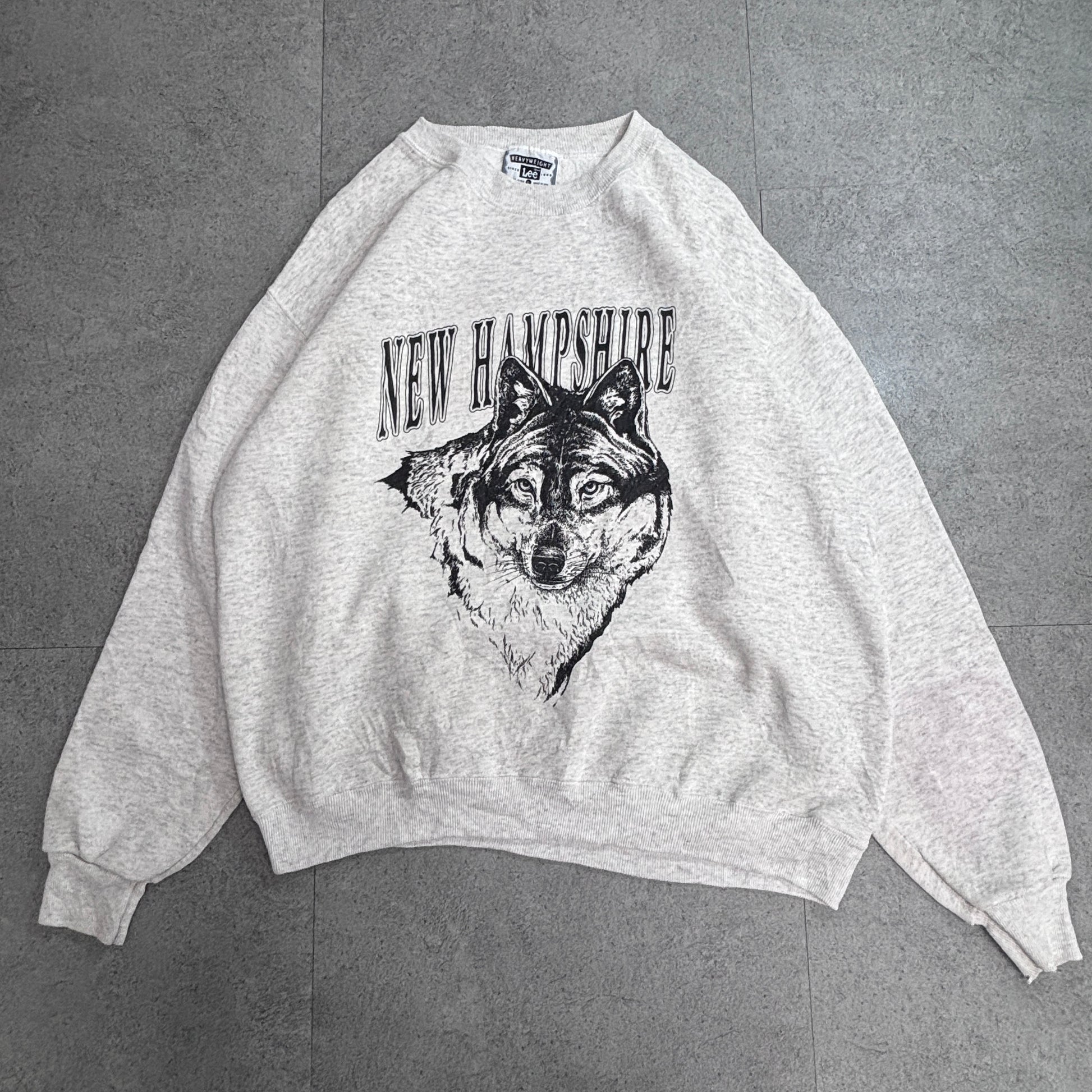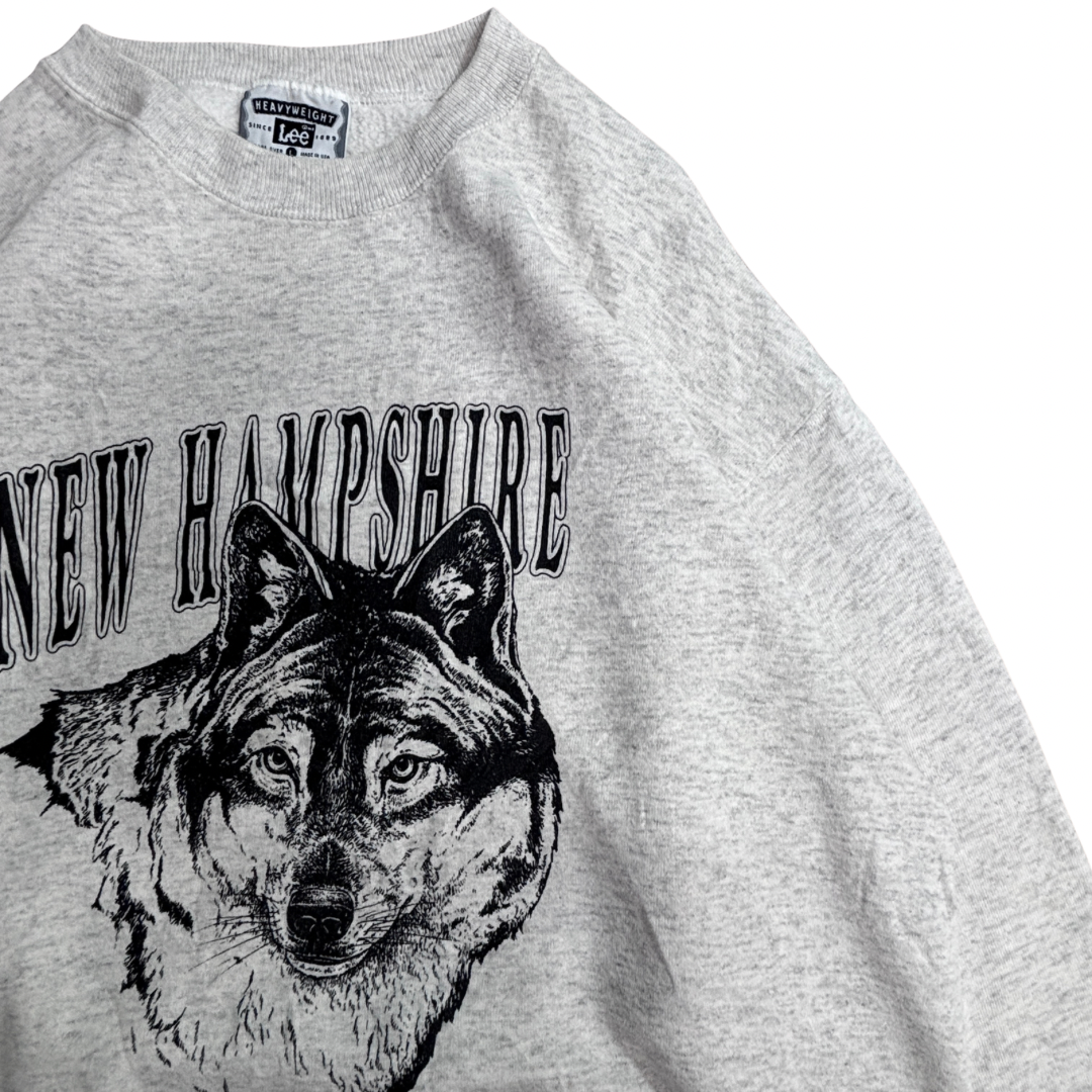 90s USA製 Lee HEAVYWEIGHT NEW HAMPSHIRE オオカミ アニマルプリント スウェット L 杢グレー/3-23