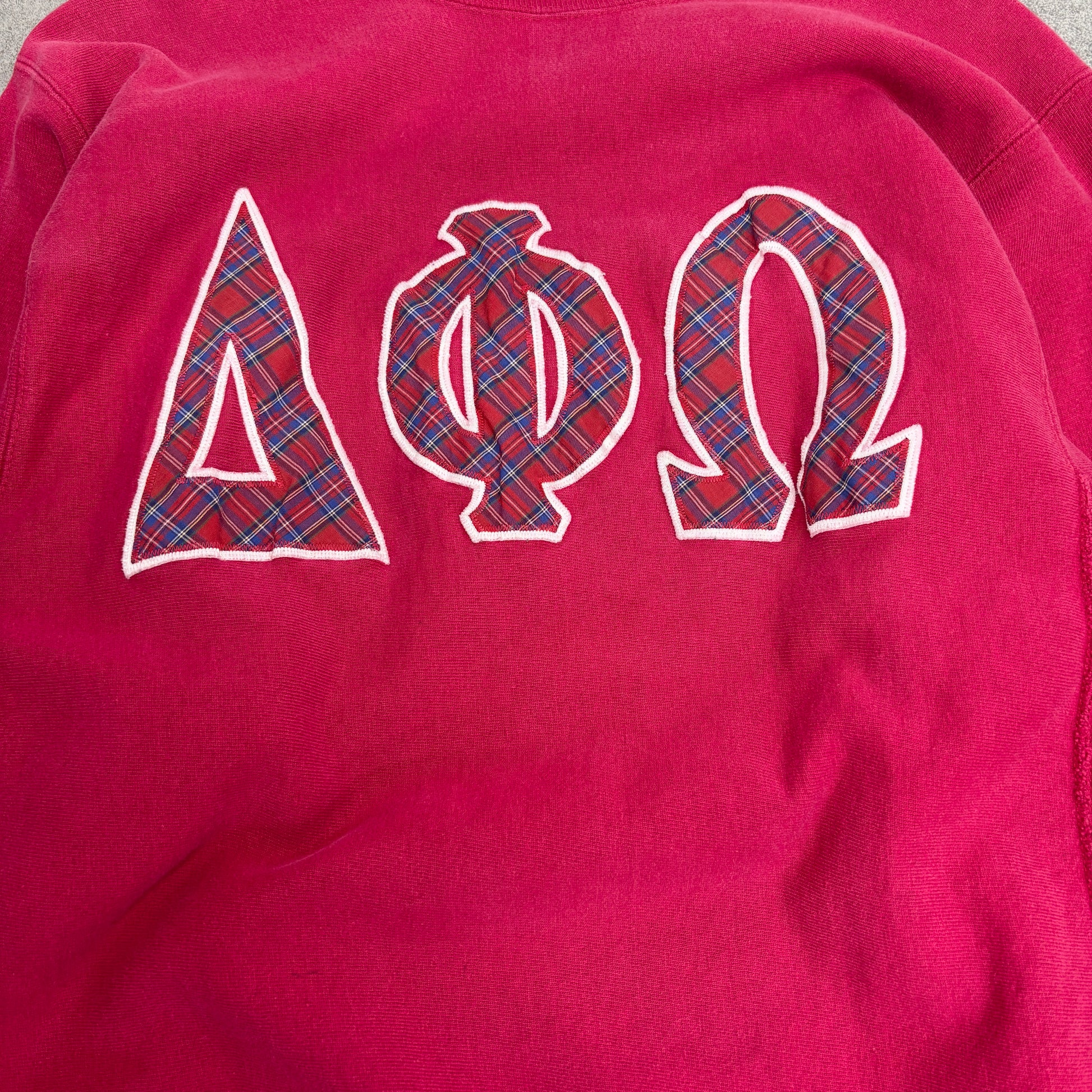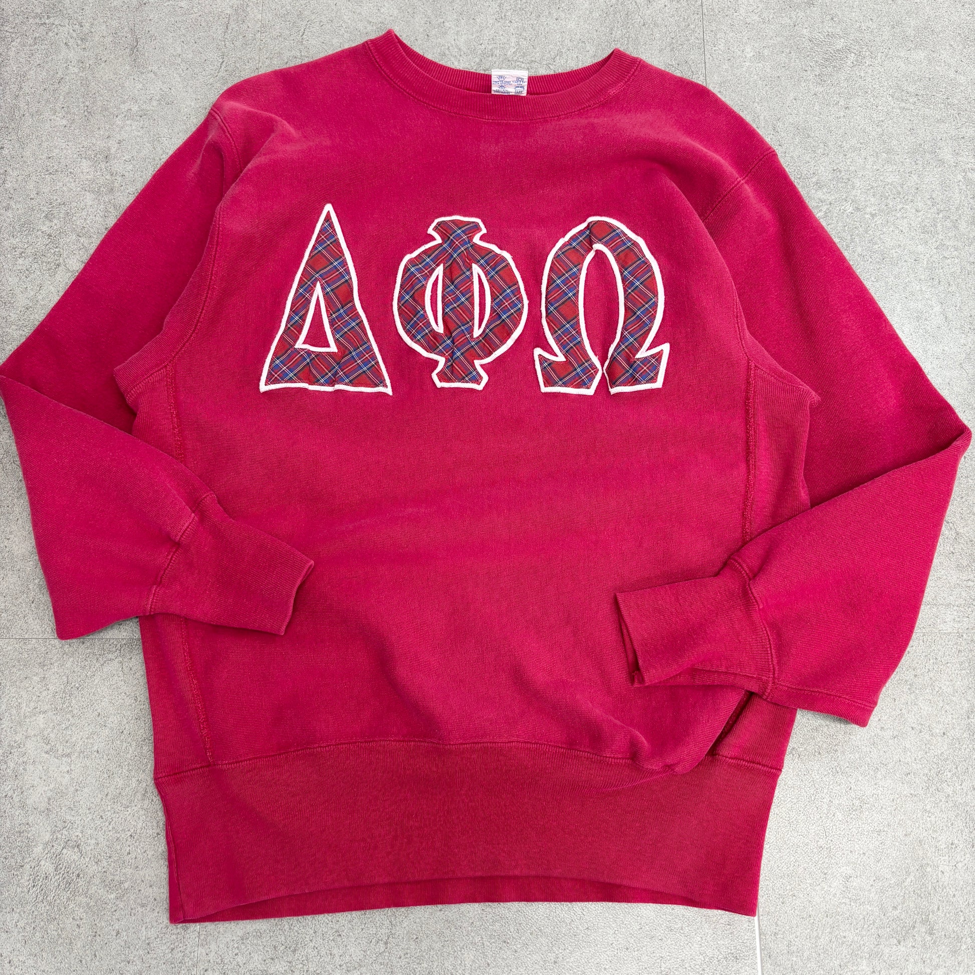 【USA製 90s】Champion リバースウィーブ スウェット XL ボルドー ΔΦΩ ギリシャ文字 タータンワッペン 刺繍ロゴ