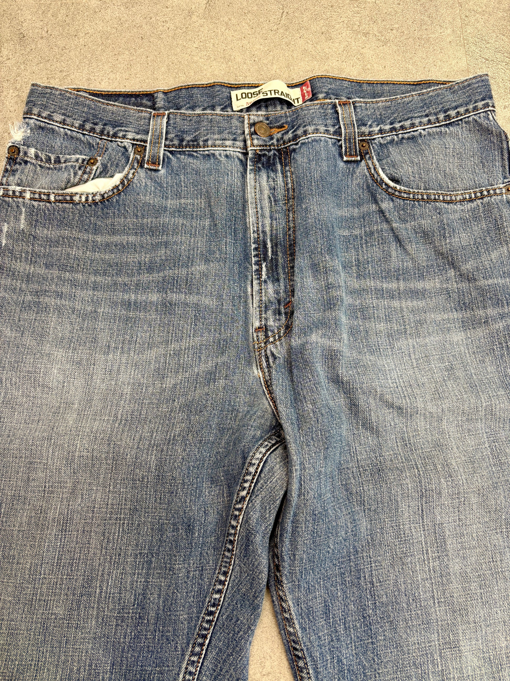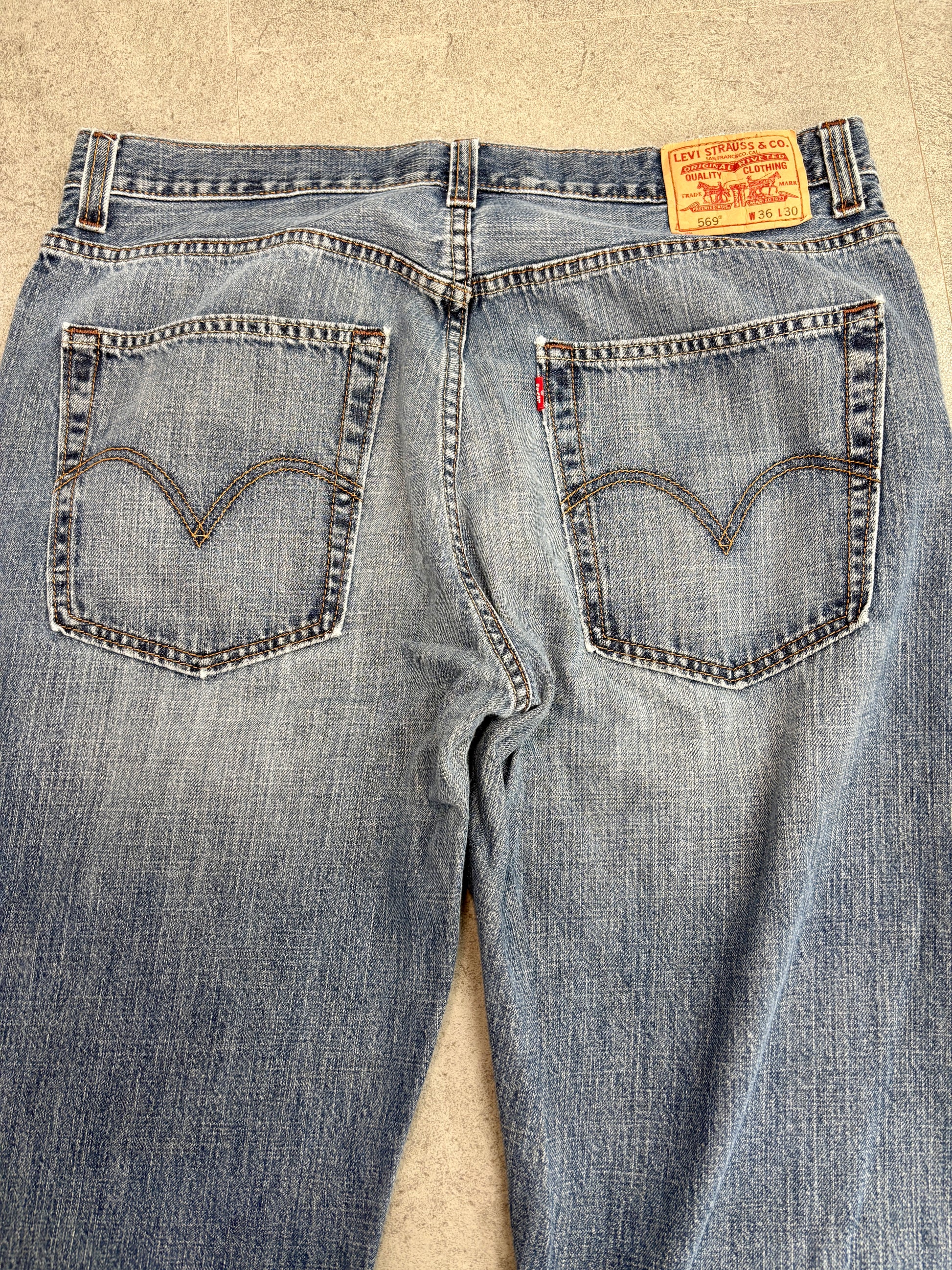 Levi’s 569® Loose Straight デニム W36 L30 レッドタブ ライトインディゴ ダメージ/ヒゲ/アタリ 00s ジップフライ