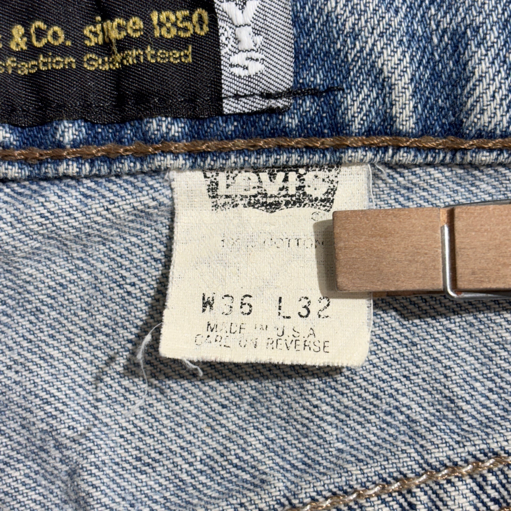 ボタン裏刻印・紙パッチ・タグ表記から**アメリカ製(MADE IN U.S.A.)**と判別可能な一本。