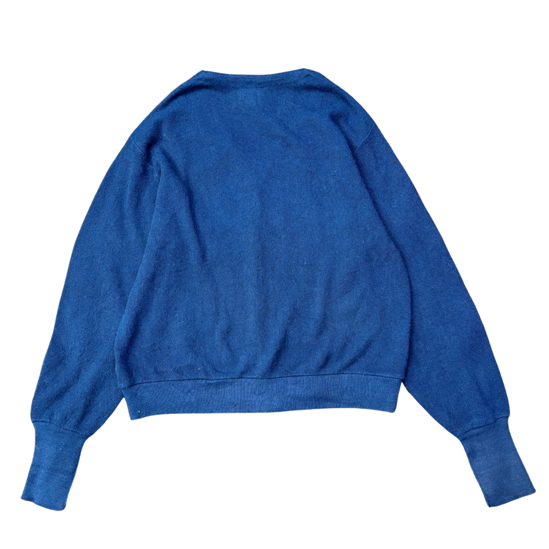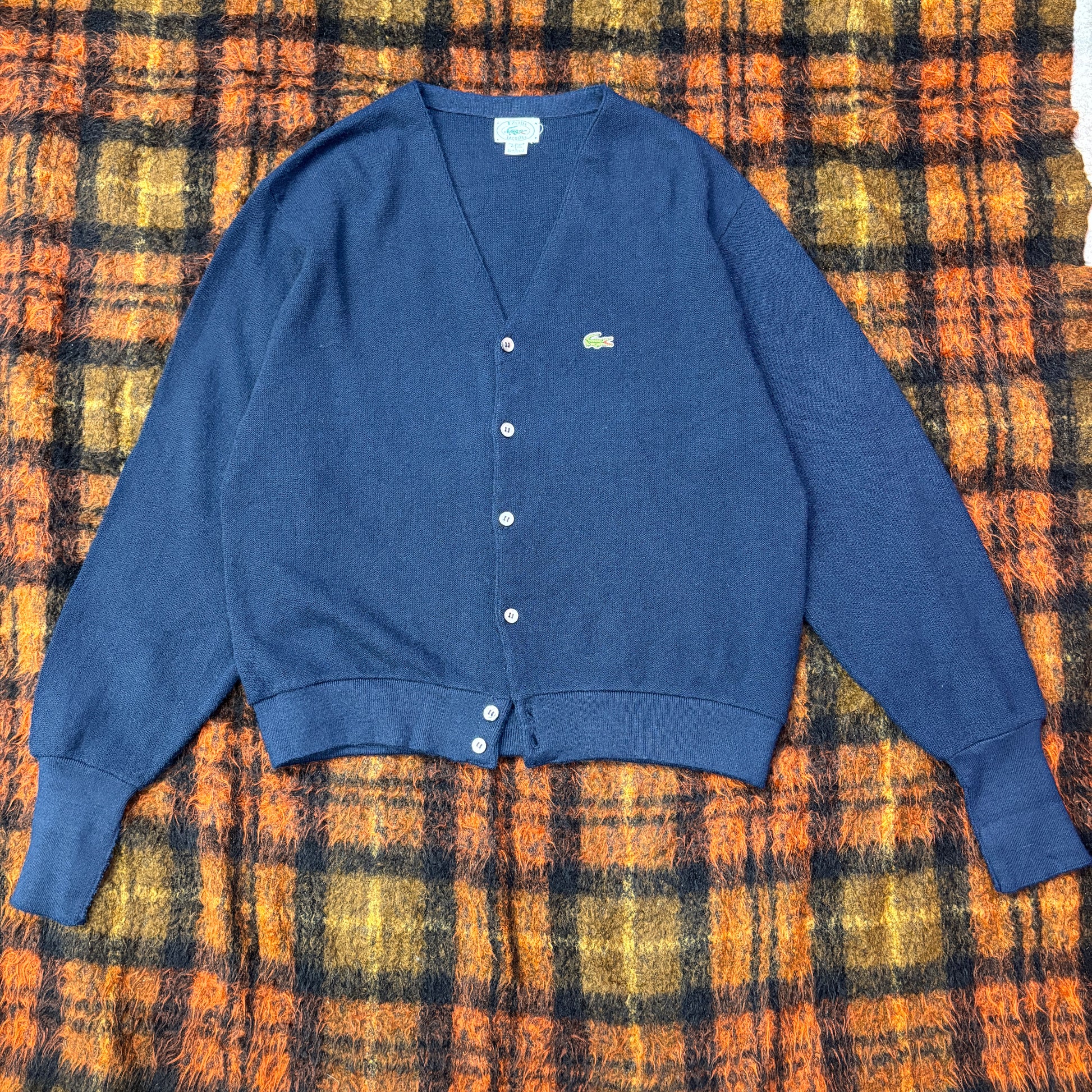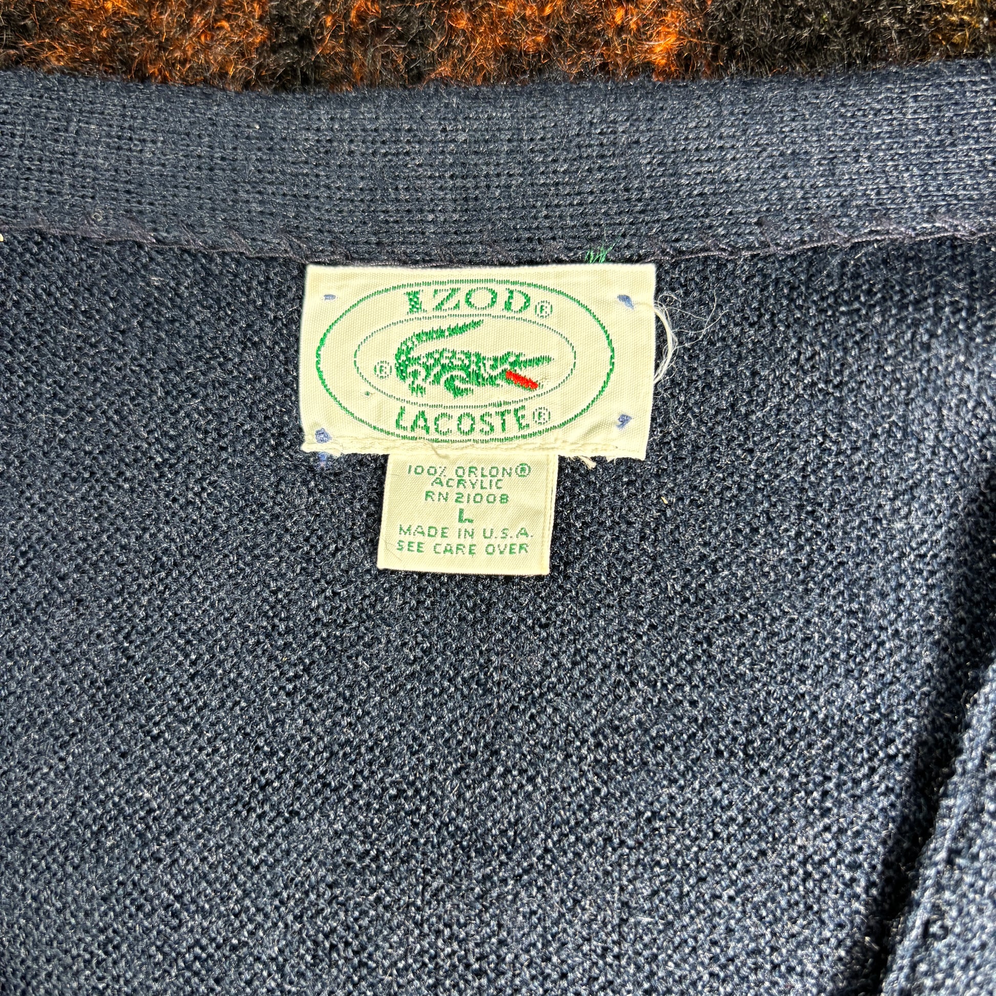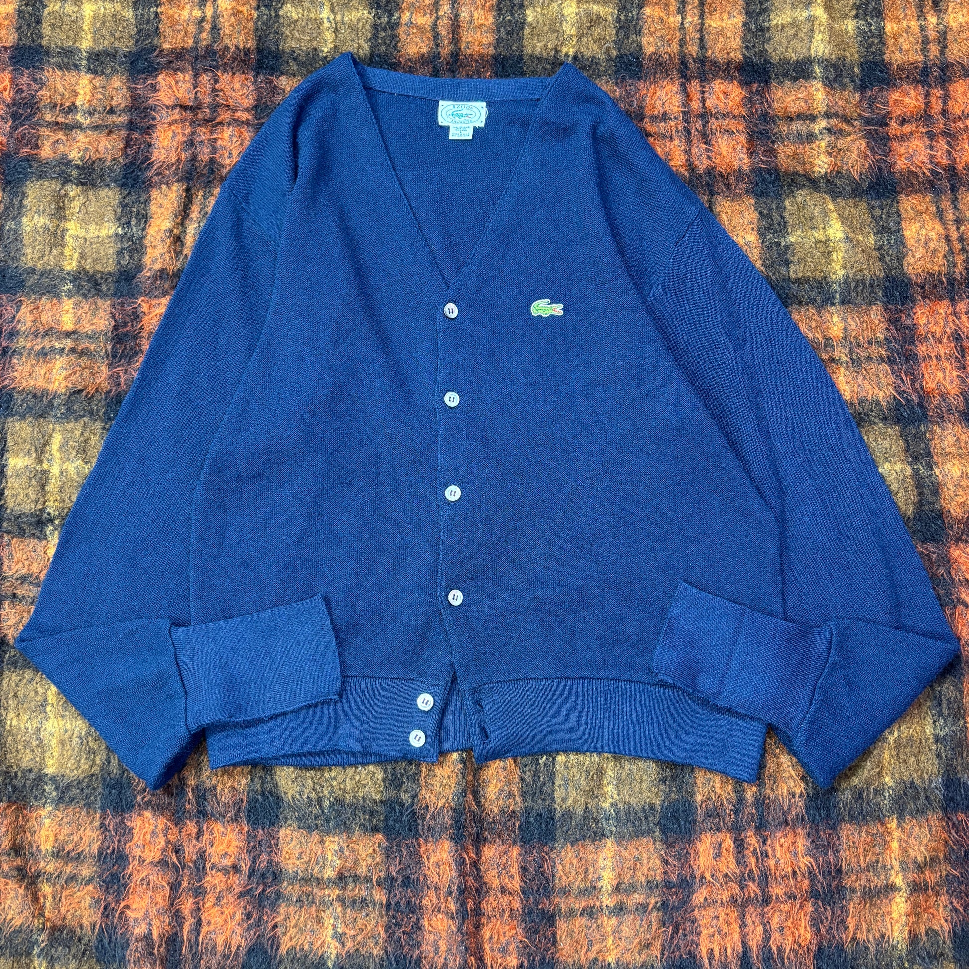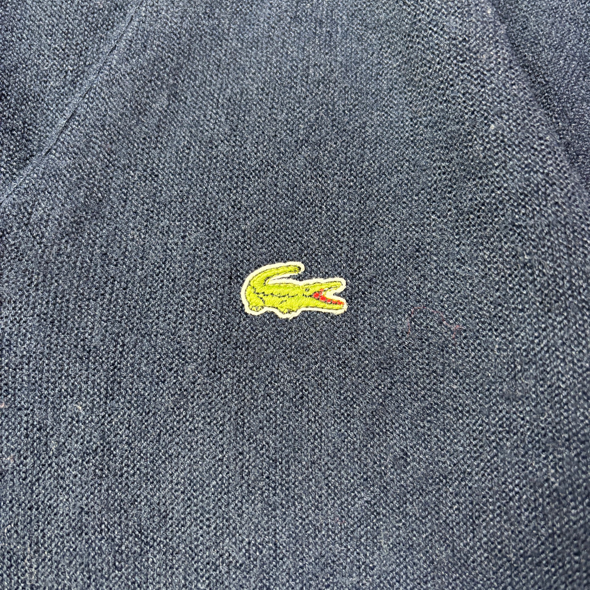 【USA製】IZOD LACOSTE アクリルニットカーディガン|ヴィンテージ ラコステ ワニロゴ 刺繍ネイビー Lサイズ