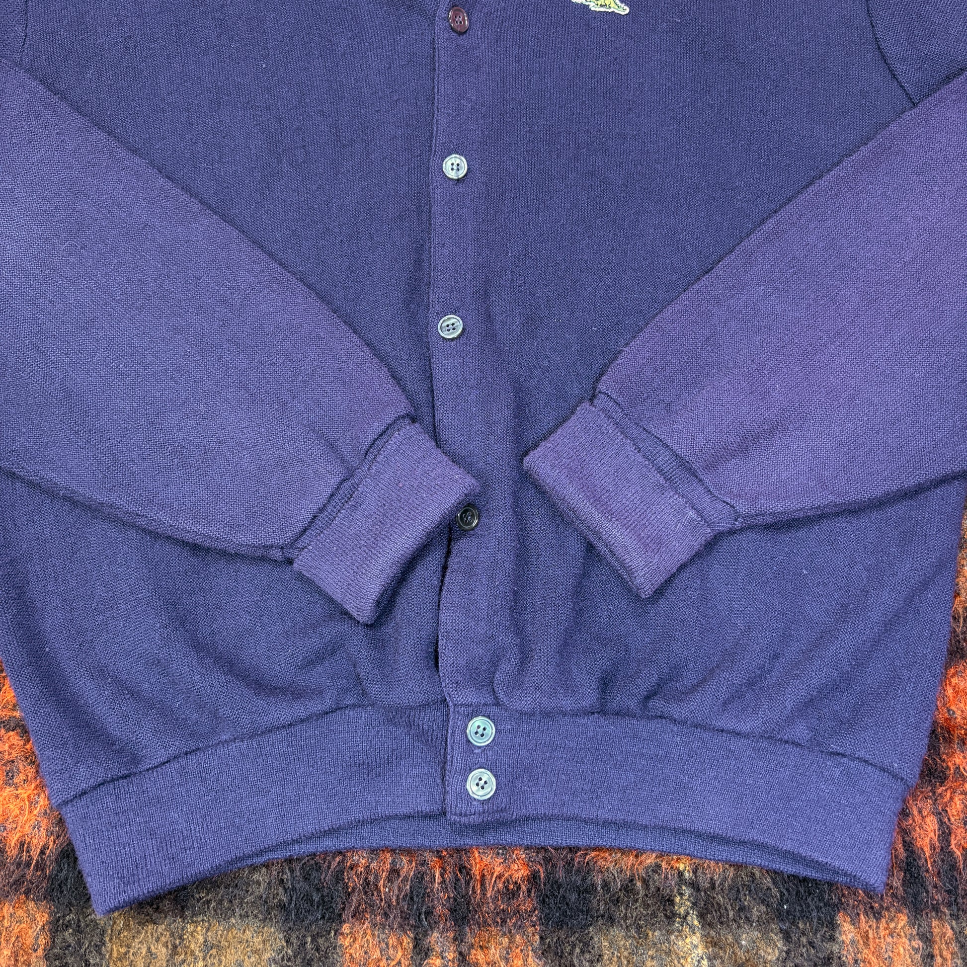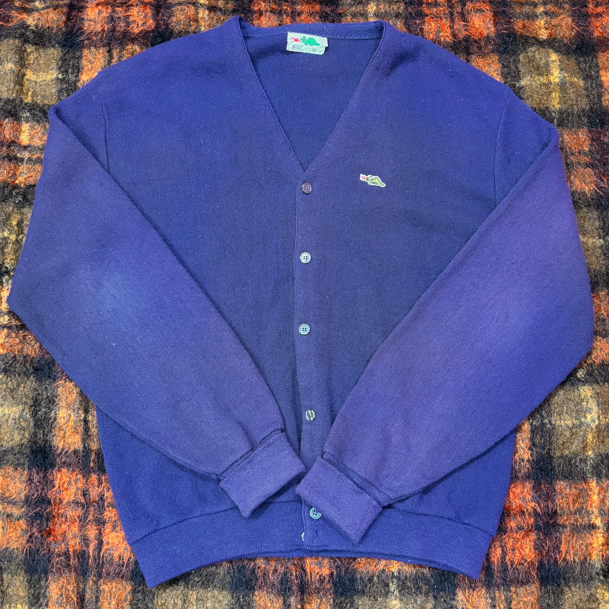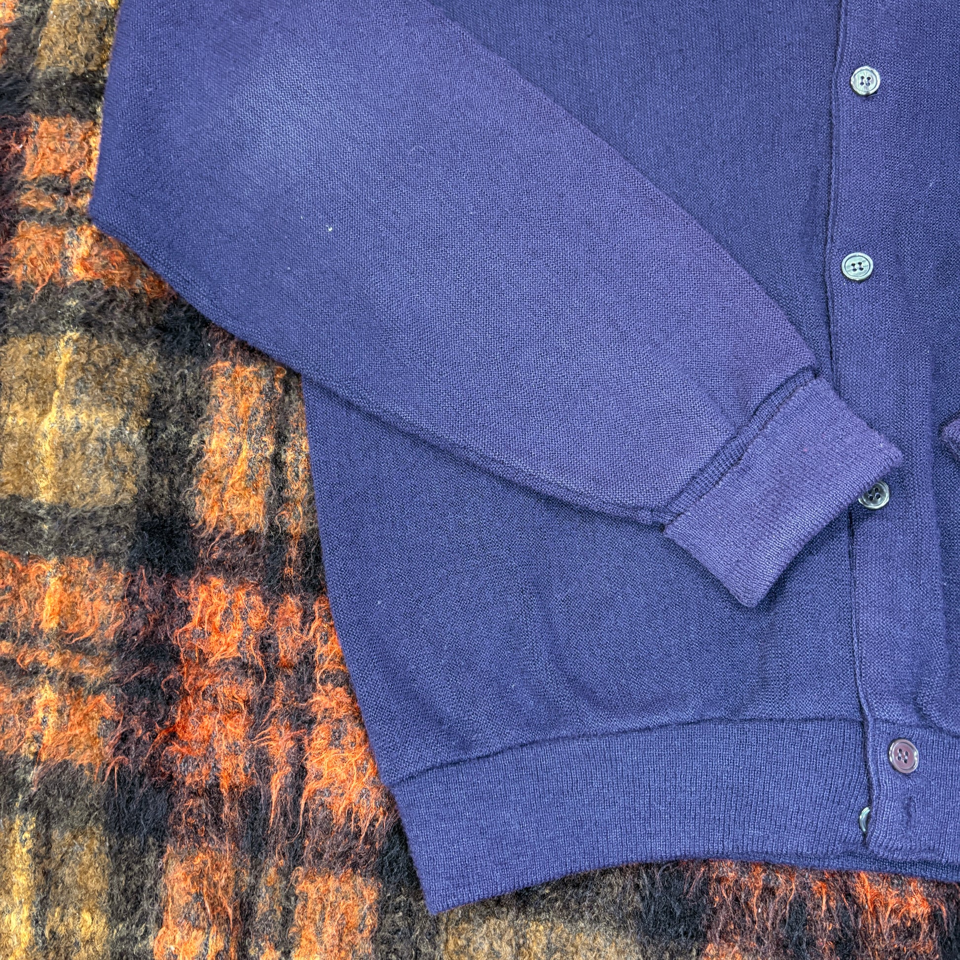 レトロなファイヤーブレス・ドラゴンの刺繍が胸元に入った、Sears製のUSAヴィンテージカーディガン。珍しい“ドラゴンタグ”に加え、深みのあるパープルカラーとマルチカラーのボタンが絶妙なアクセント。