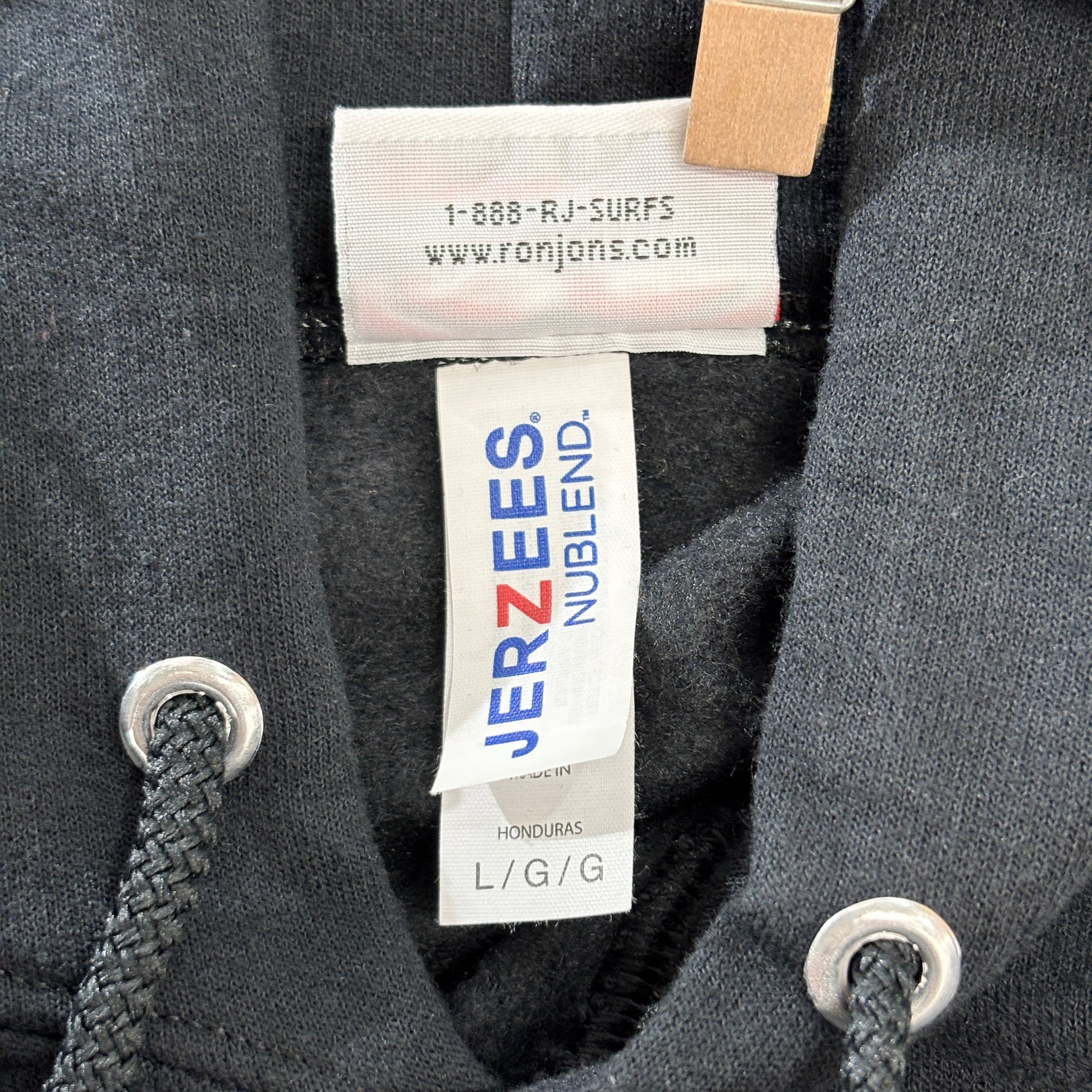 ボディは Jerzees NuBlend(ホンジュラス製) を使用しており、90年代〜2000年代以降によく見られるプリントパーカーの定番仕様です。