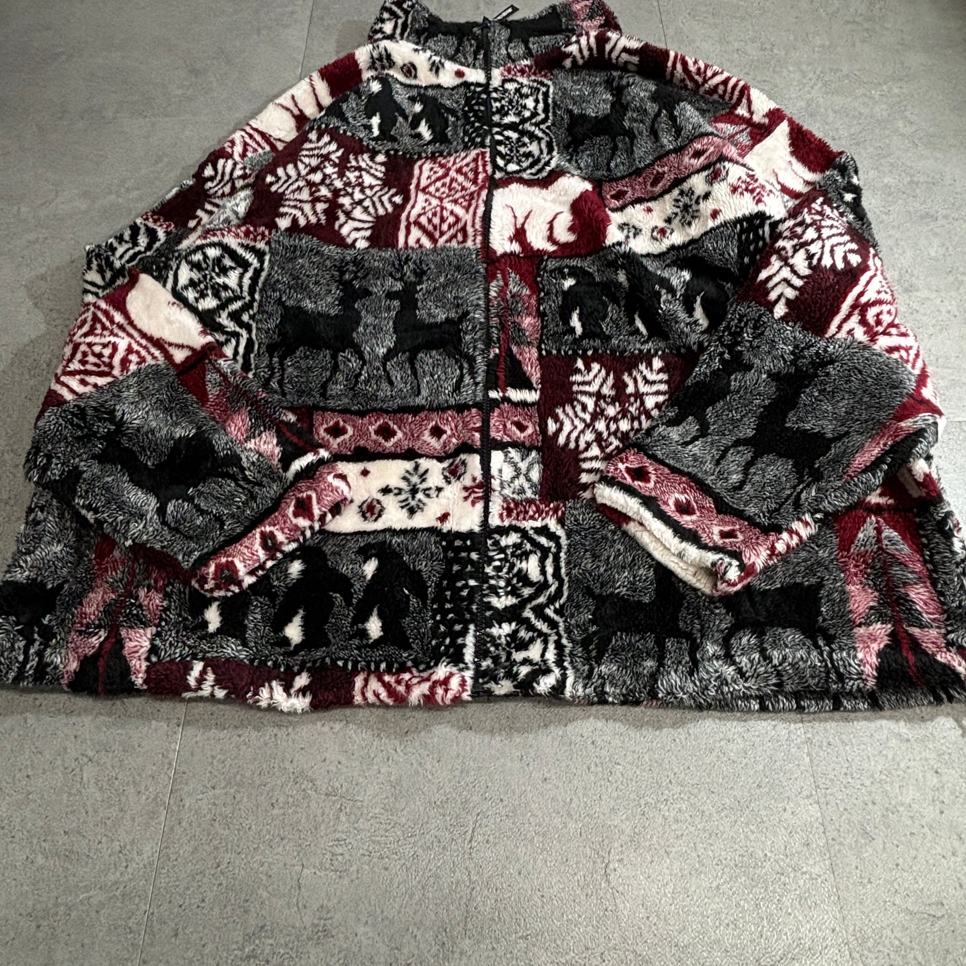 BLACK MOUNTAIN OUTDOOR 総柄フリースジャケット XL USA製 ノルディックアニマル 90s
