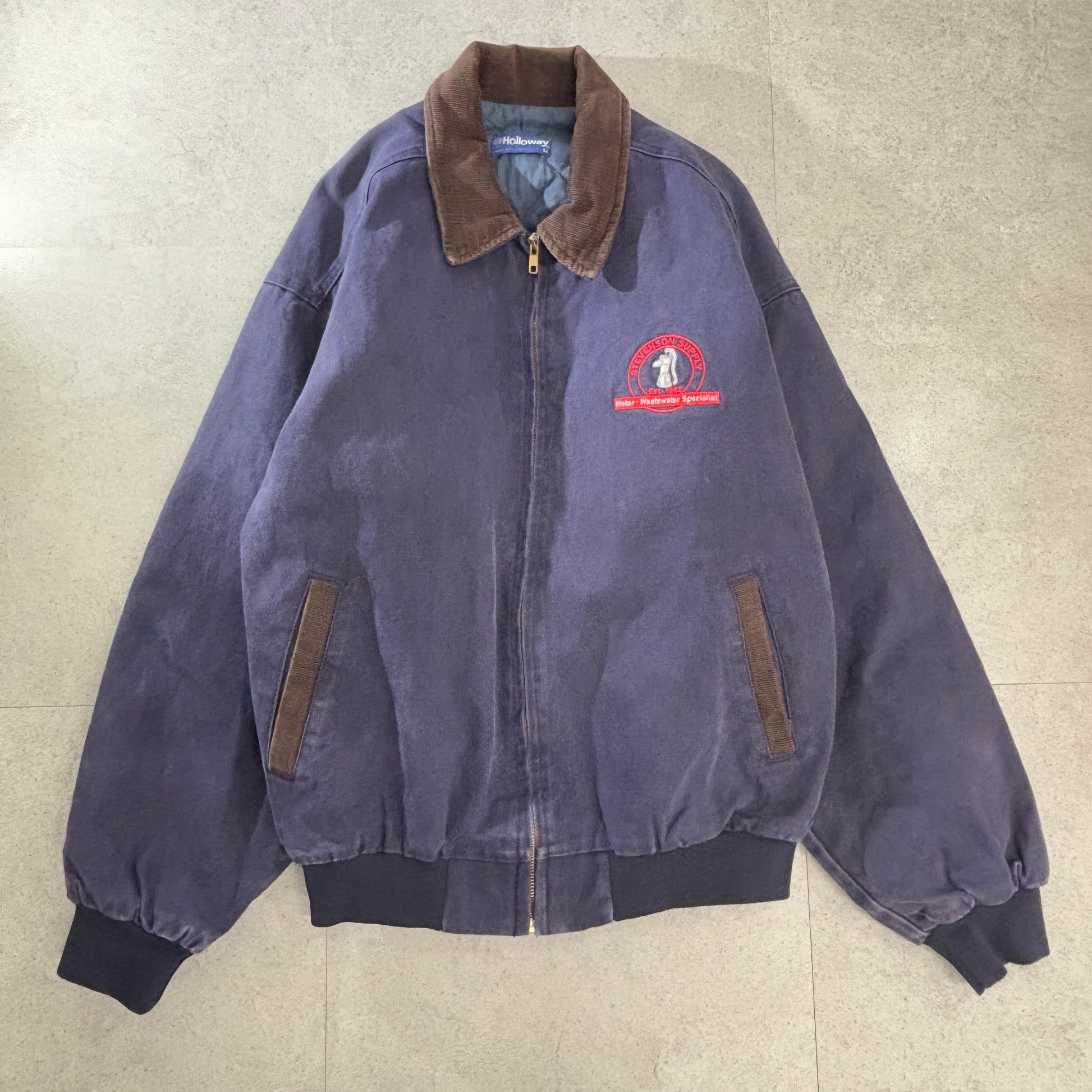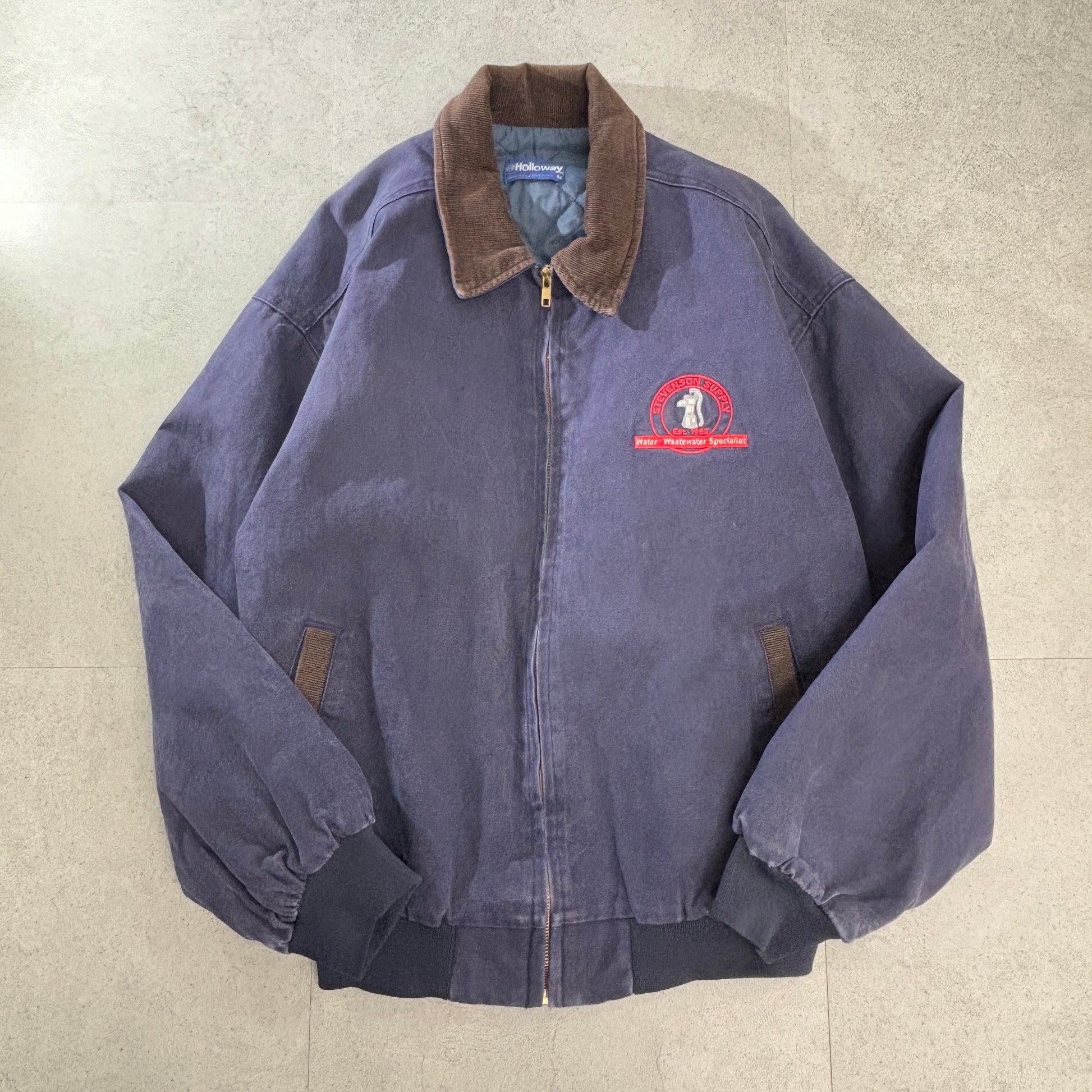 90s Holloway “STEVENSON SUPPLY” 刺繍ワークジャケット/USA製/コーデュロイ襟/YKKジップ/企業ロゴ入り ヴィンテージ