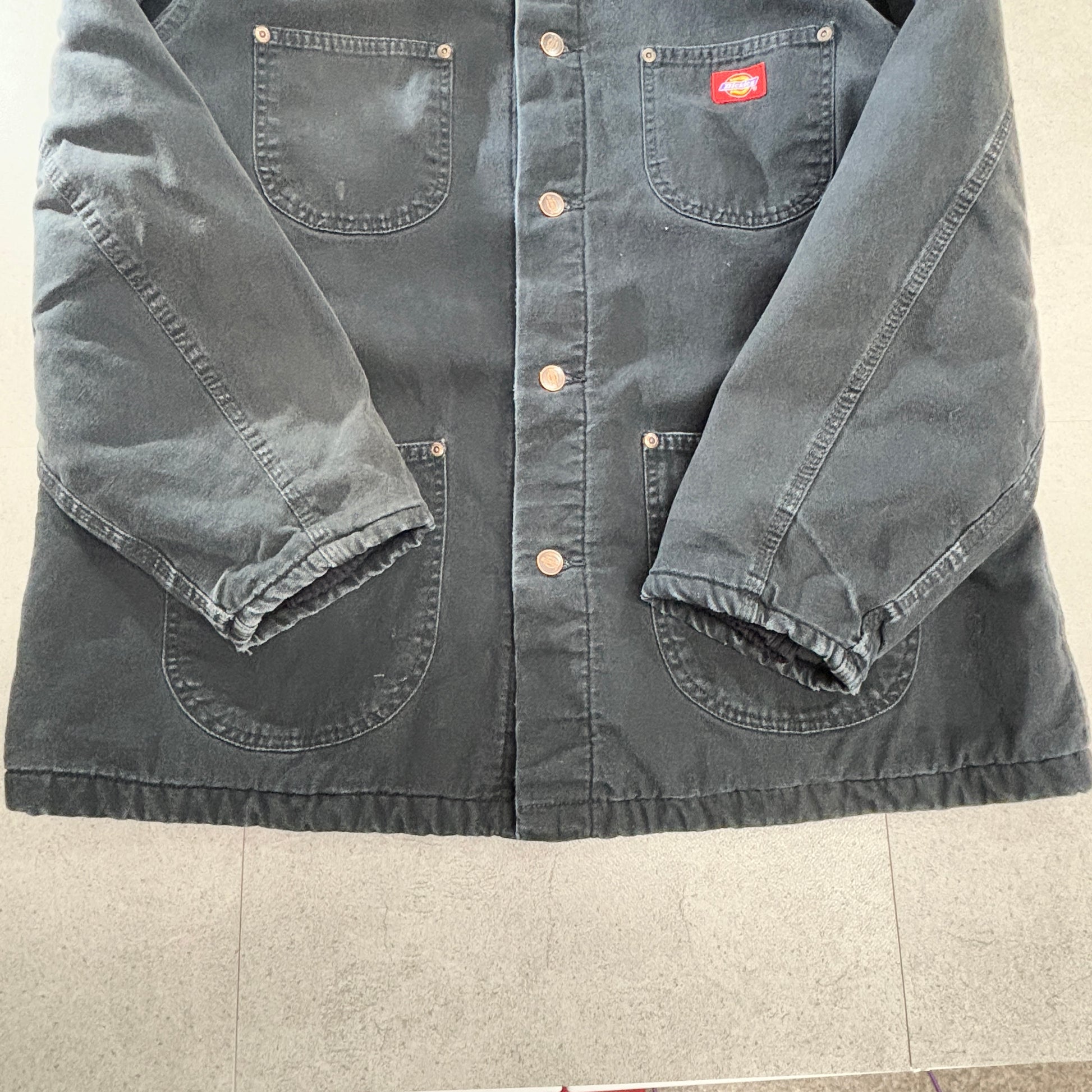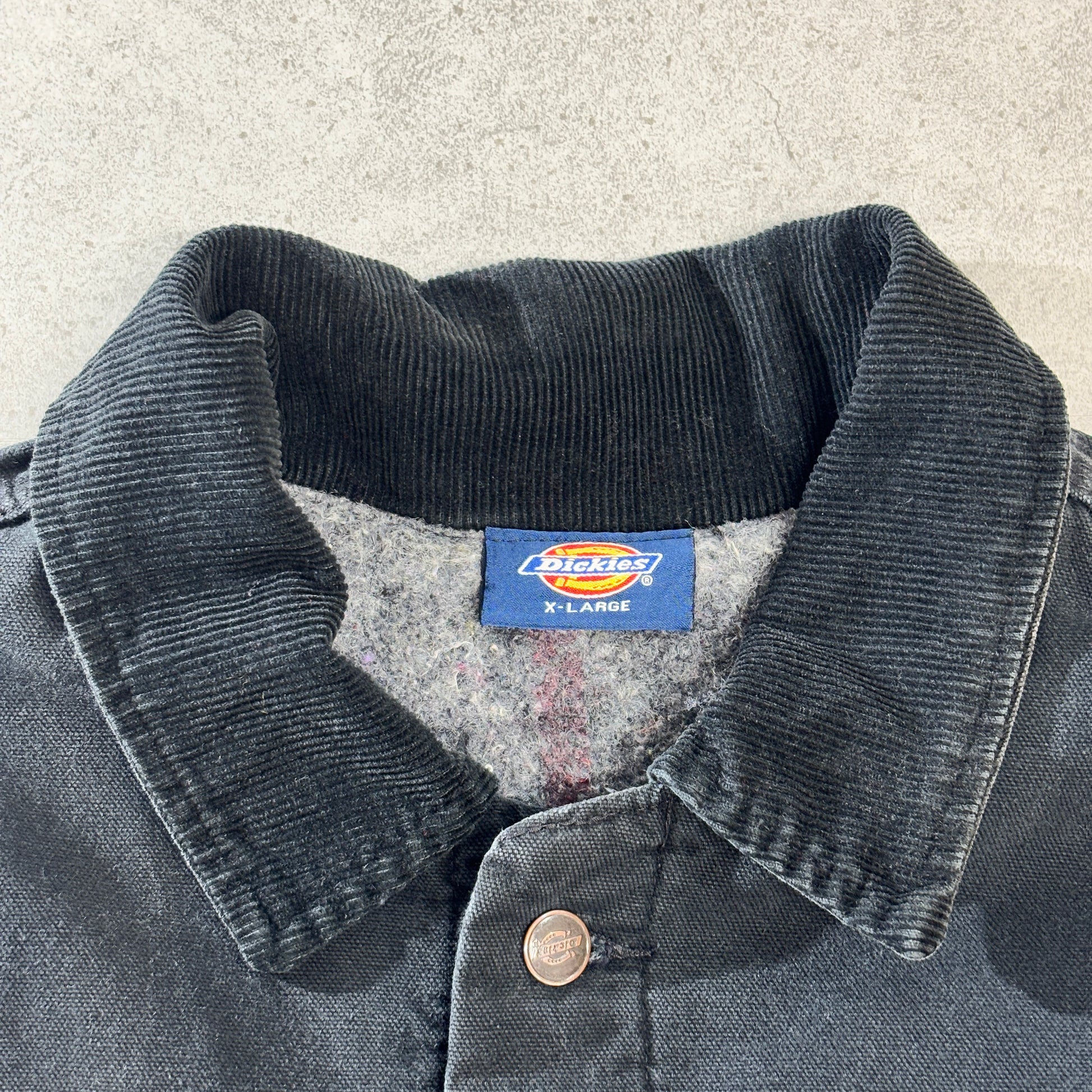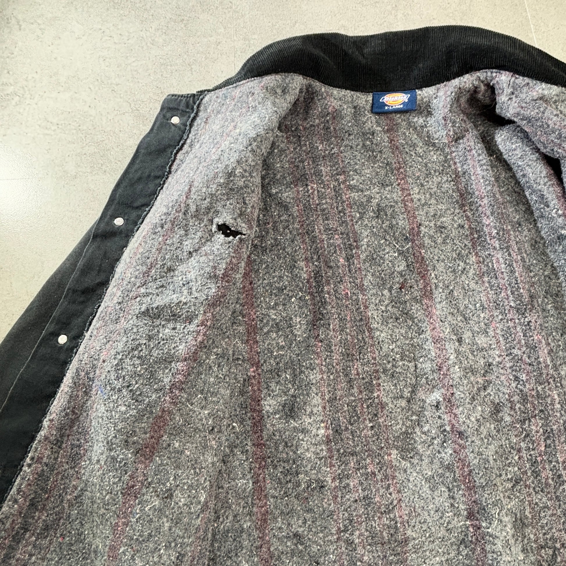 Dickies ダック地 チョアコート/カバーオール /ブラック/コーデュロイ襟/裏起毛キルティング/ワークジャケット XL