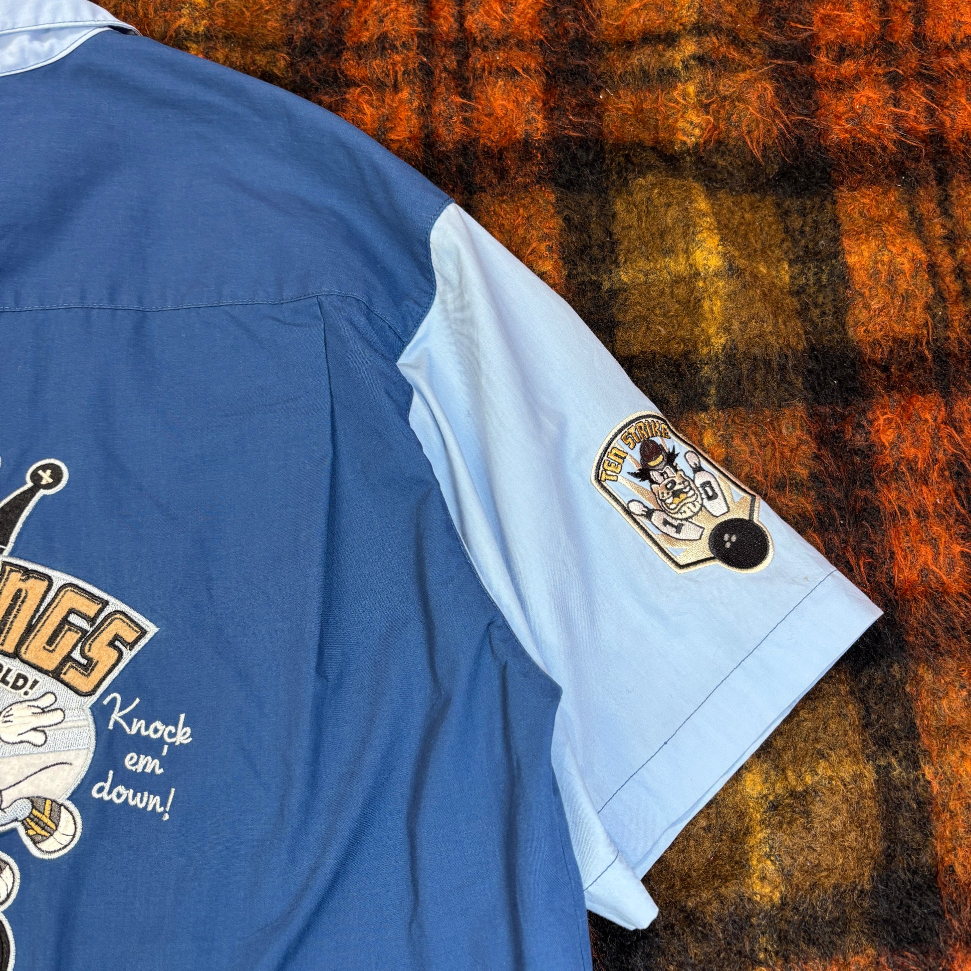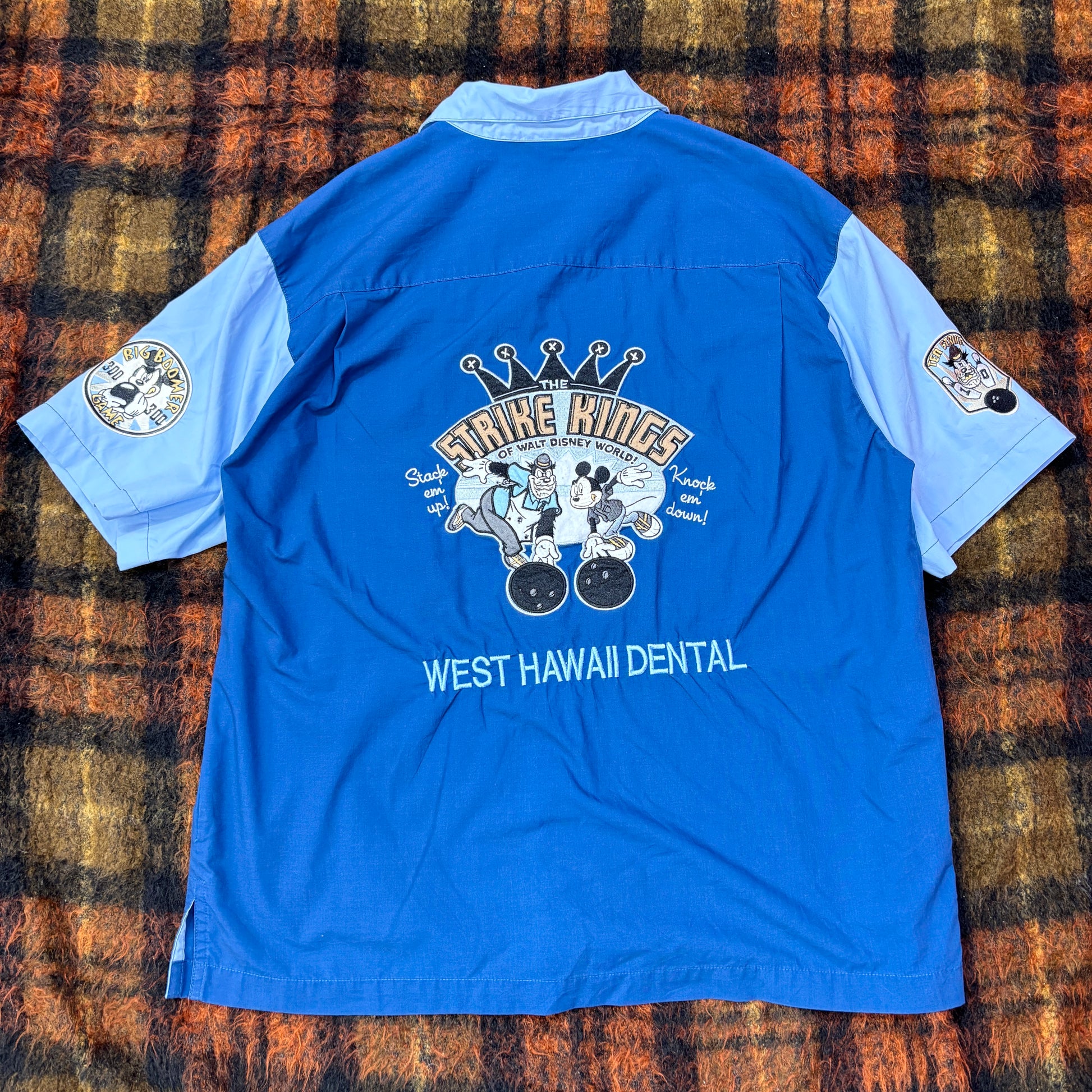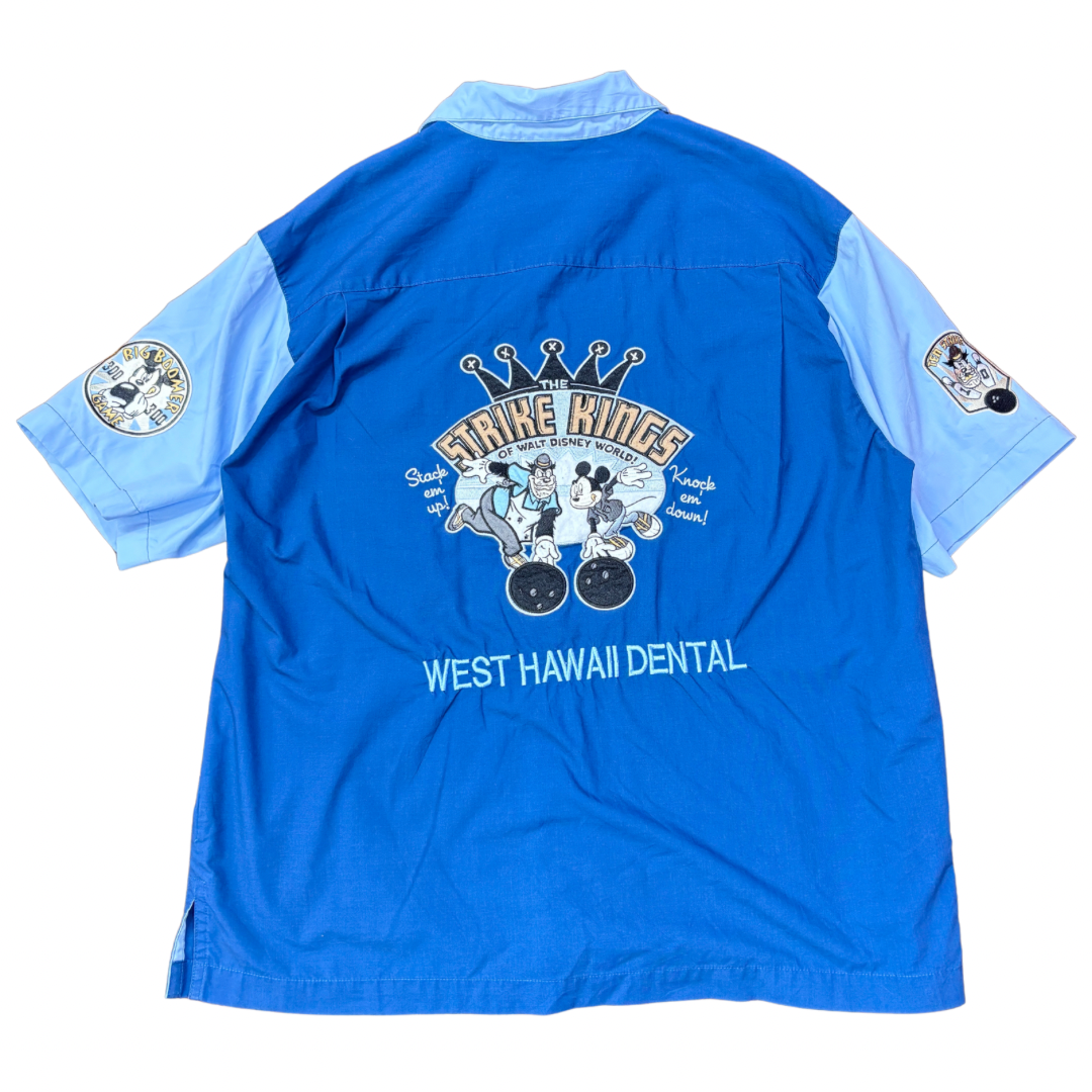 ミッキー&グーフィーがボウリングチームを結成!? 「The Strike Kings of Walt Disney World」デザインが目を惹く、ユーモア満点のボウリングシャツです。