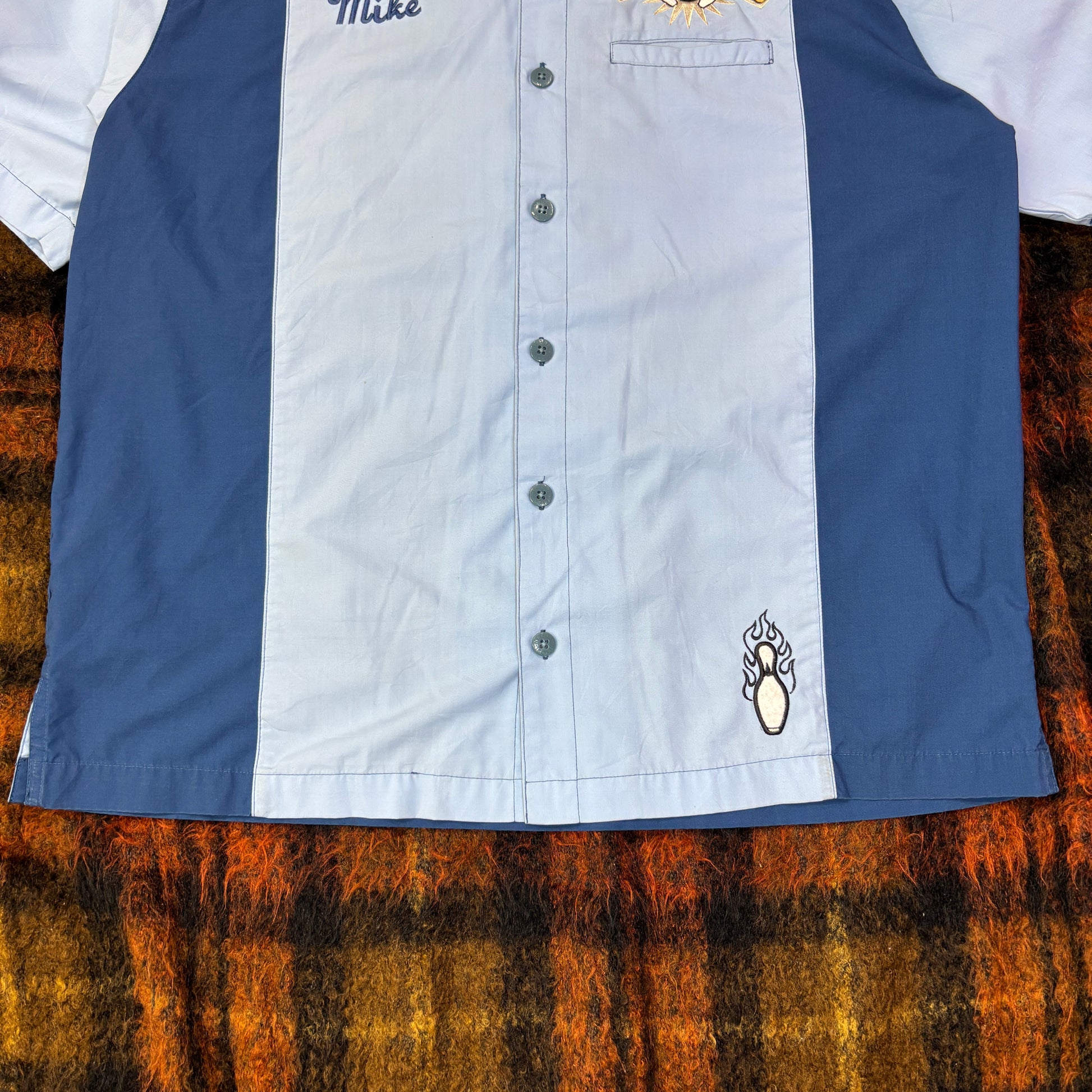 フロントはネーム刺繍入り(Mike)、バックにはレトロアメリカンな刺繍アートが堂々とオン。袖や胸元のワッペン、配色切り替えなど、ディテールにも抜かりなし。