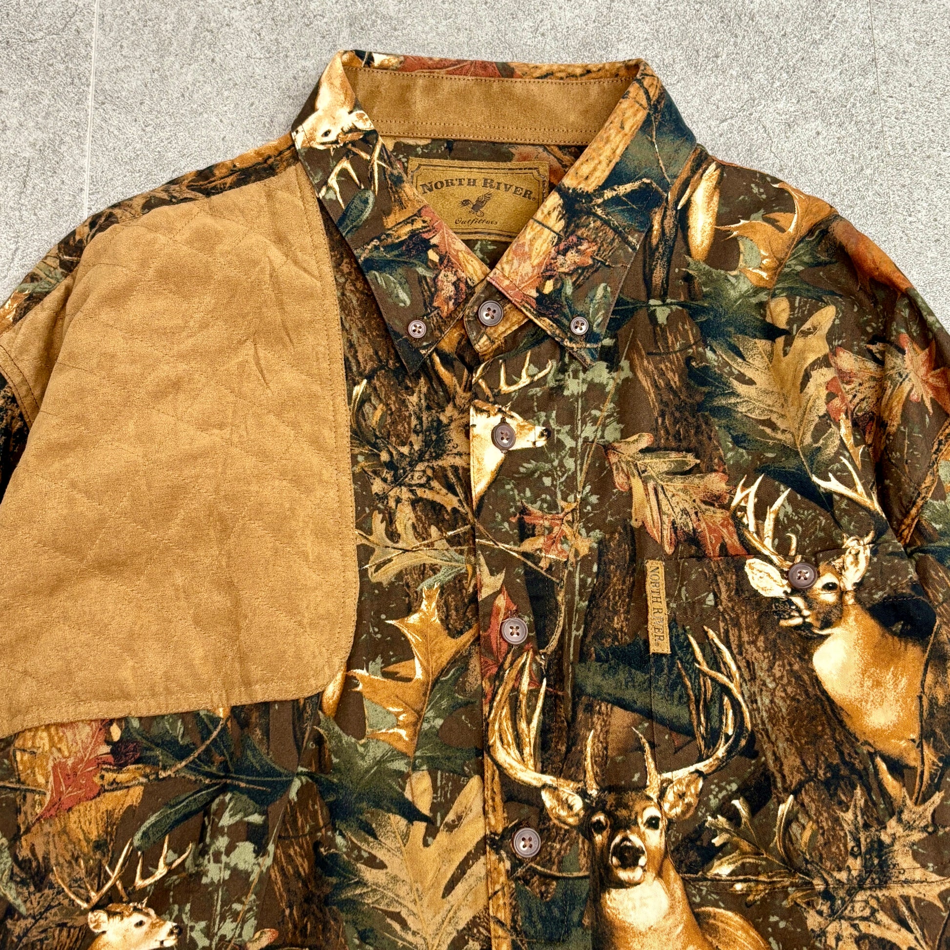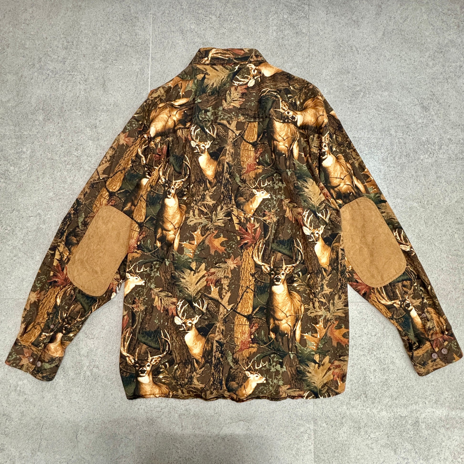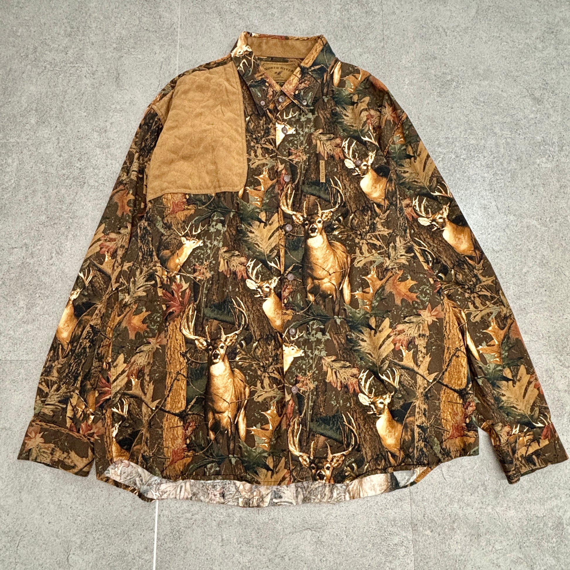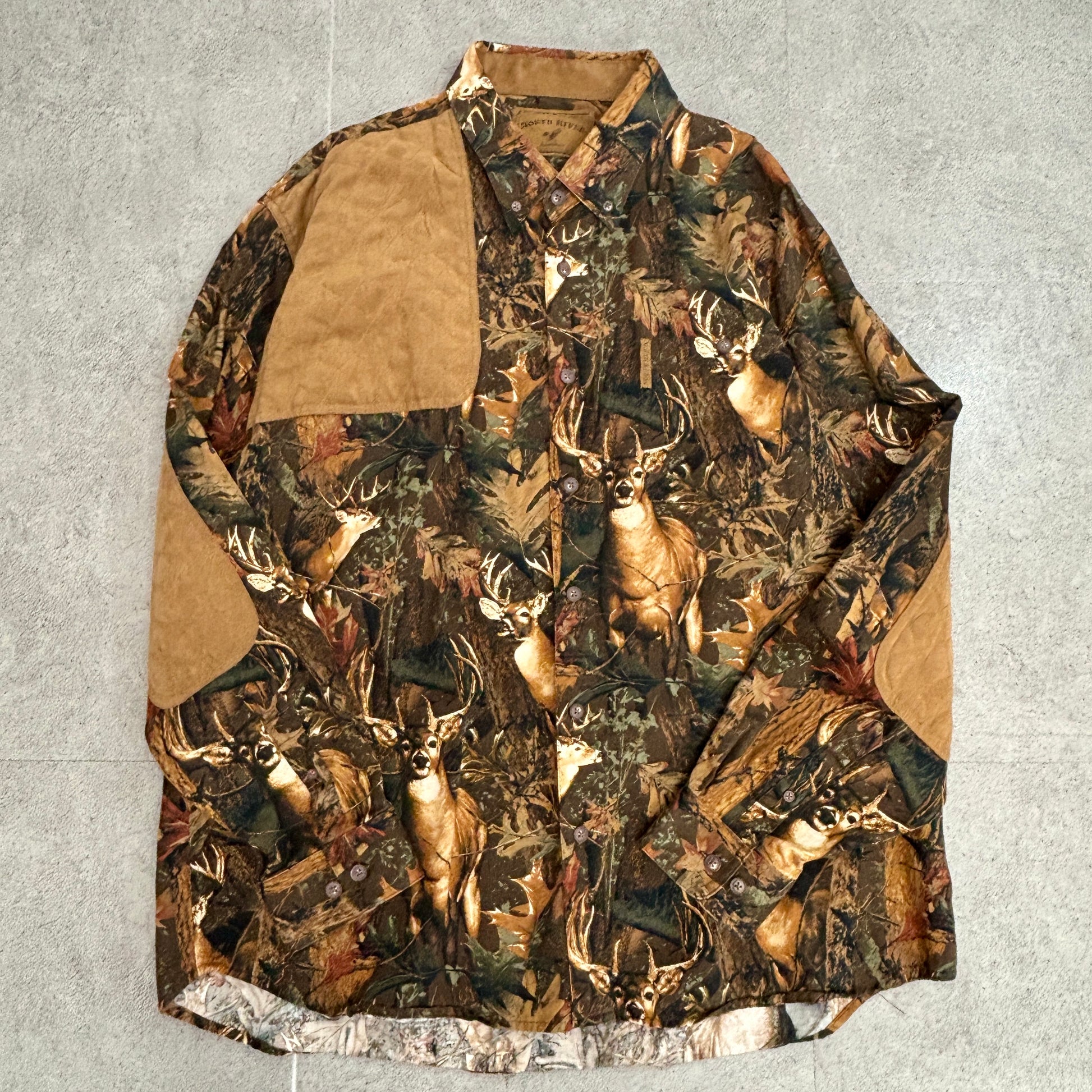 North River アニマルカモフラージュ 長袖シャツ XLサイズ 鹿総柄 ハンティングスタイル ヴィンテージ感