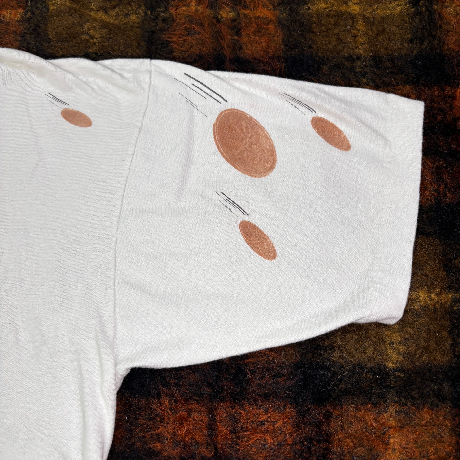 ゆったりとしたボディに映える大胆なグラフィックは、Y2Kカルチャーや90sリバイバルとも好相性。フェスやイベント、ストリートスタイルの主役アイテムとしてもおすすめです。