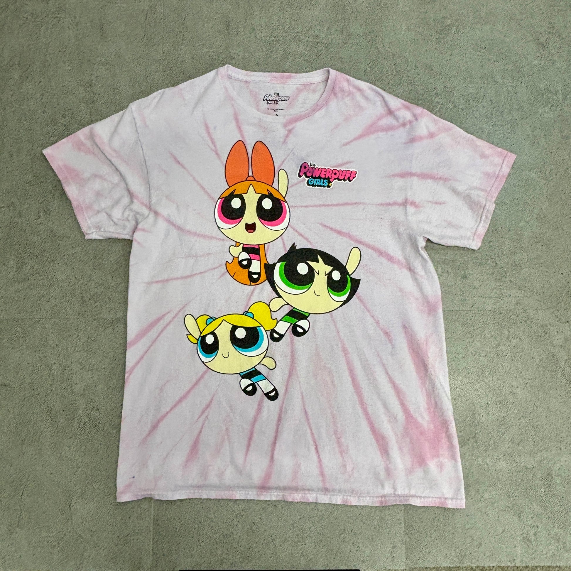 【90s復刻デザイン】パワーパフガールズ タイダイ Tシャツ ピンク Lサイズ Cartoon Network 正規品