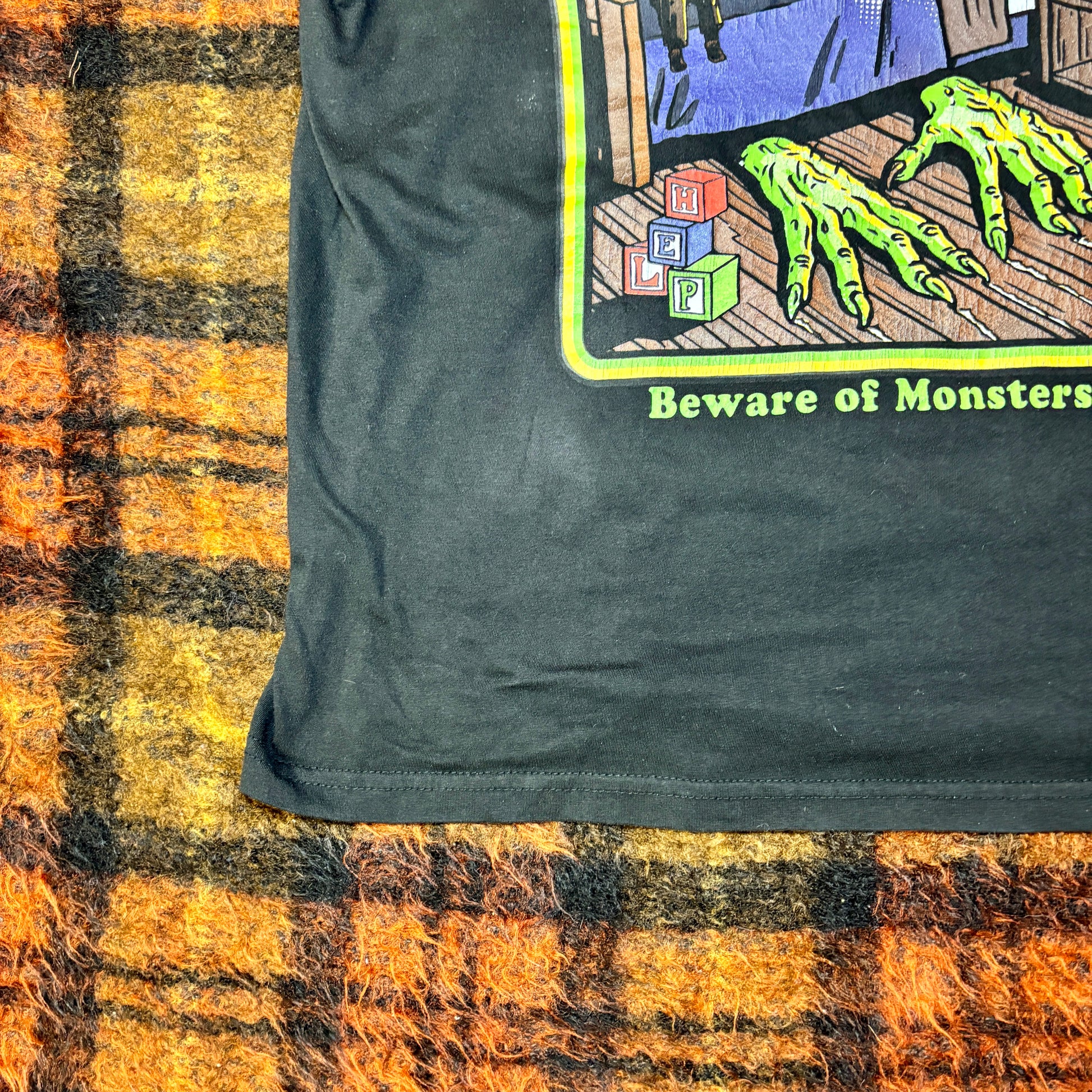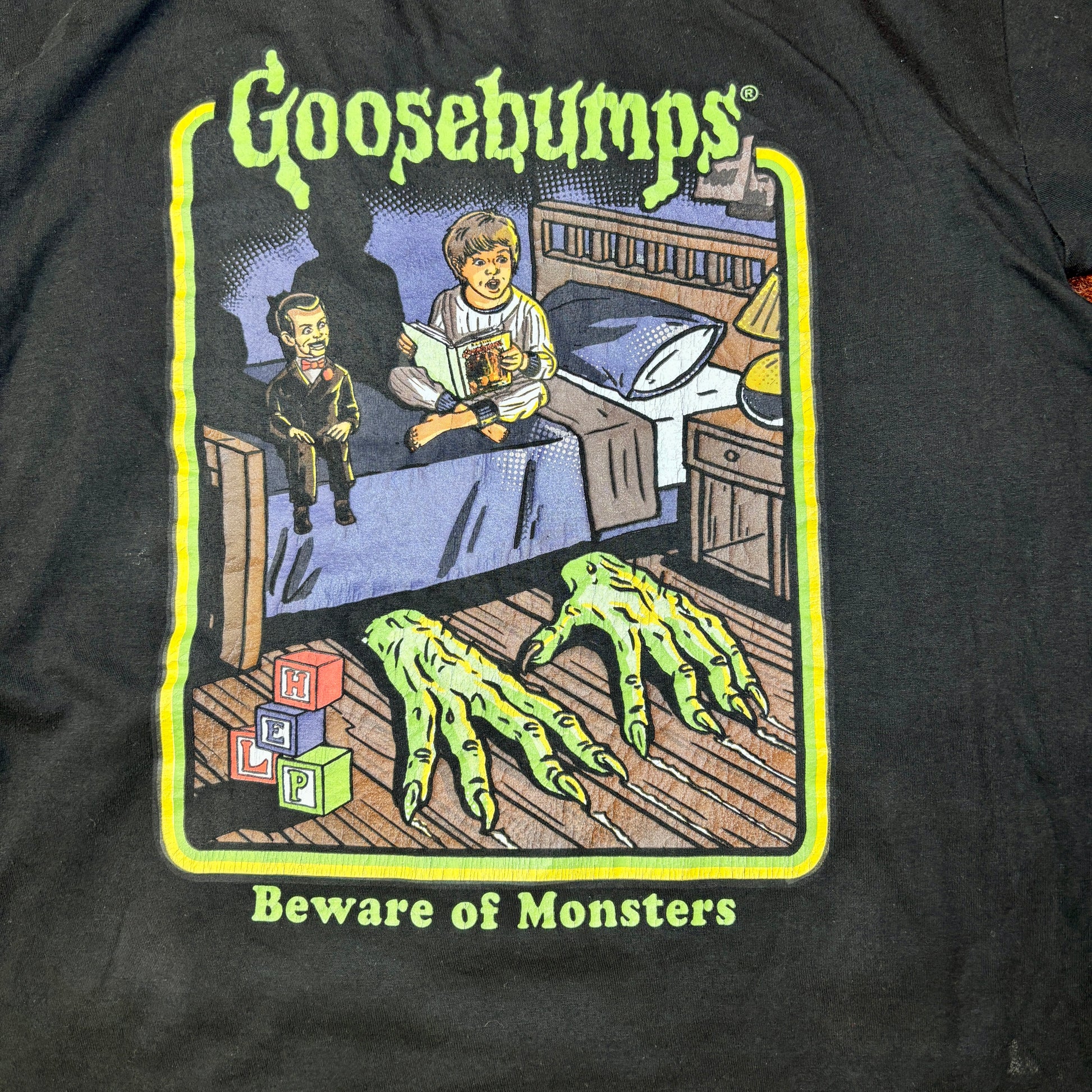 【90s ホラー】Goosebumps グースバンプス Tシャツ|BEWARE OF MONSTERS レトロ怪奇アメコミ風