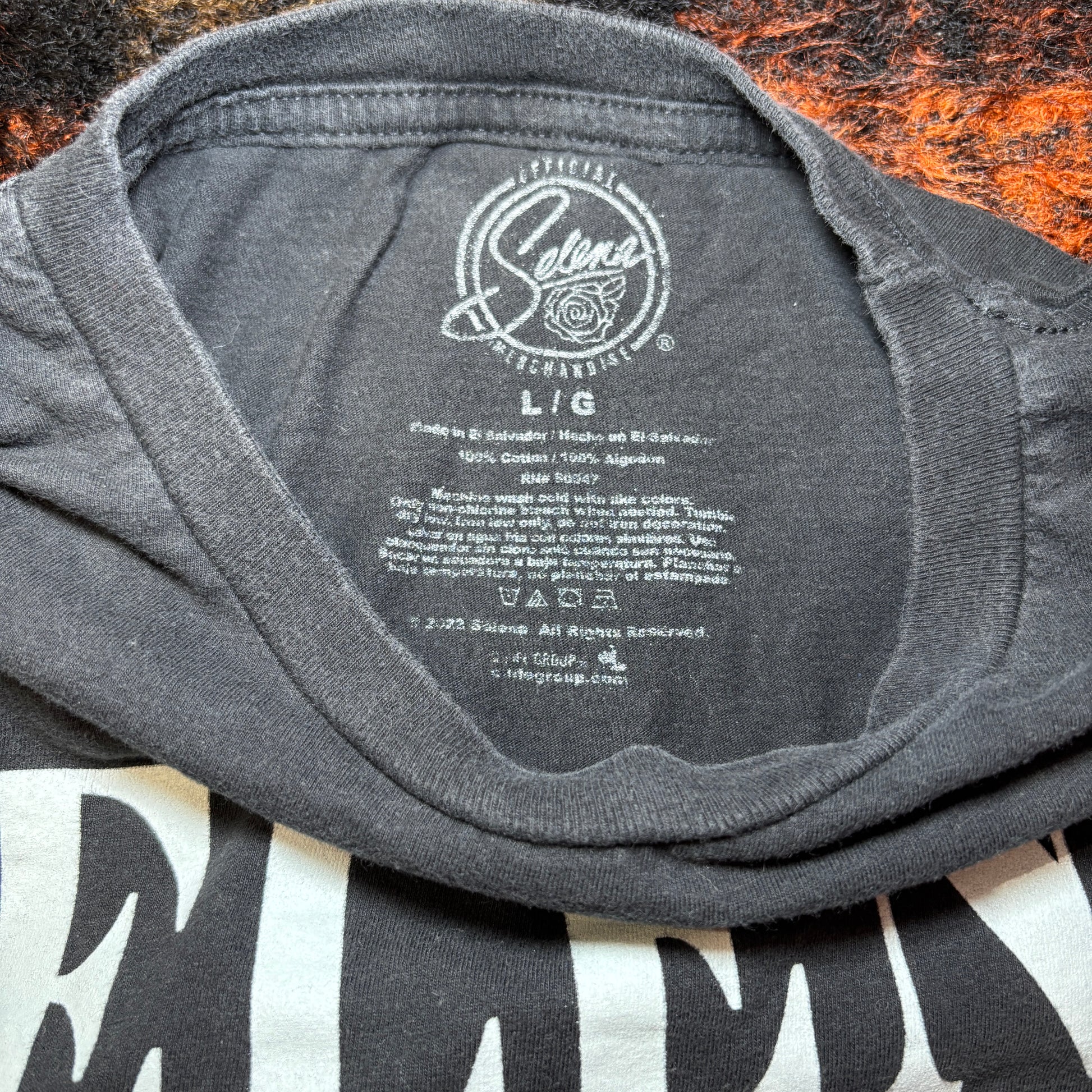 伝説のラテンスター「セレーナ」のライブフォトが大きくプリントされた一枚。90sテイスト溢れるモノクロデザインは、シンプルながら存在感抜群。音楽ファンはもちろん、古着好きにもおすすめです。