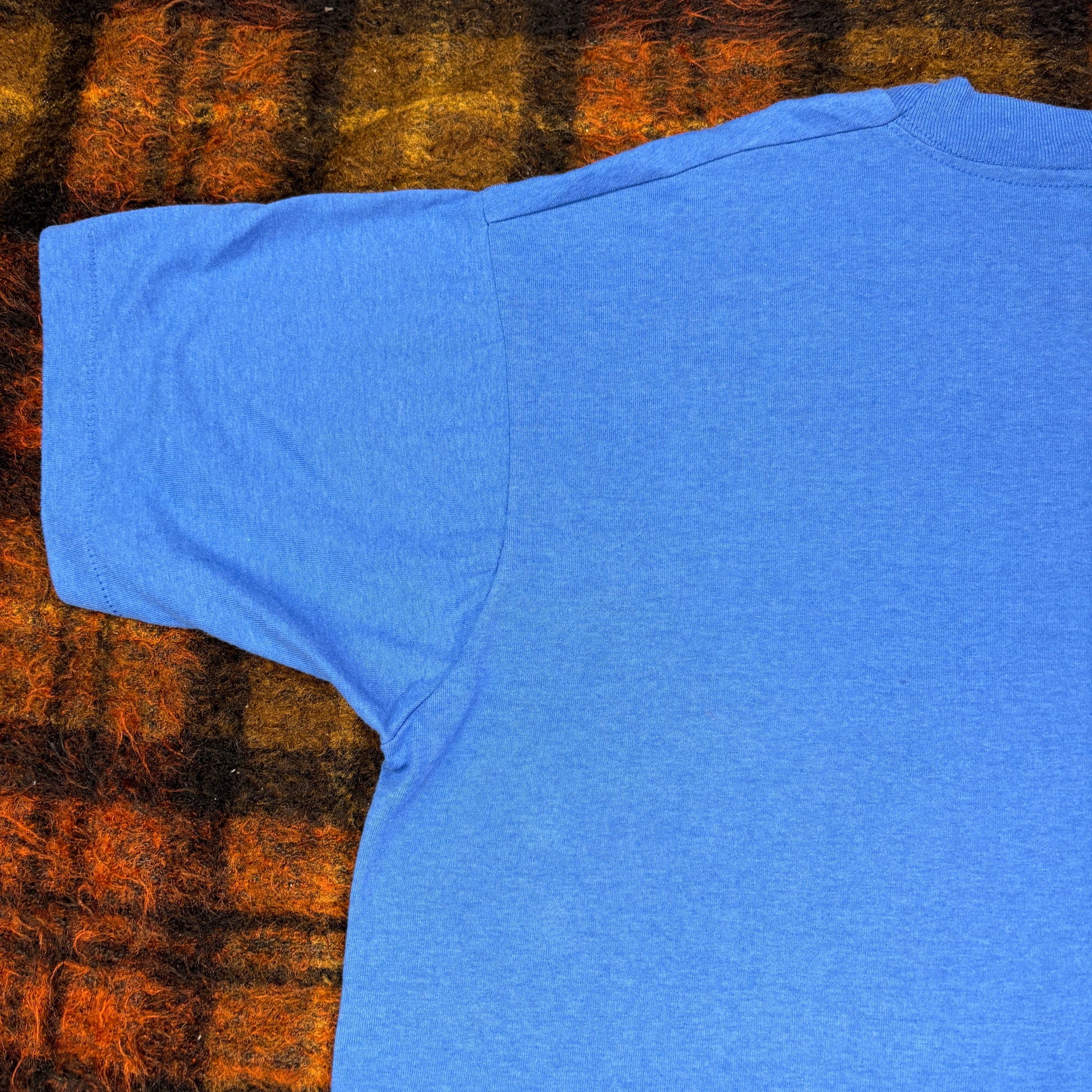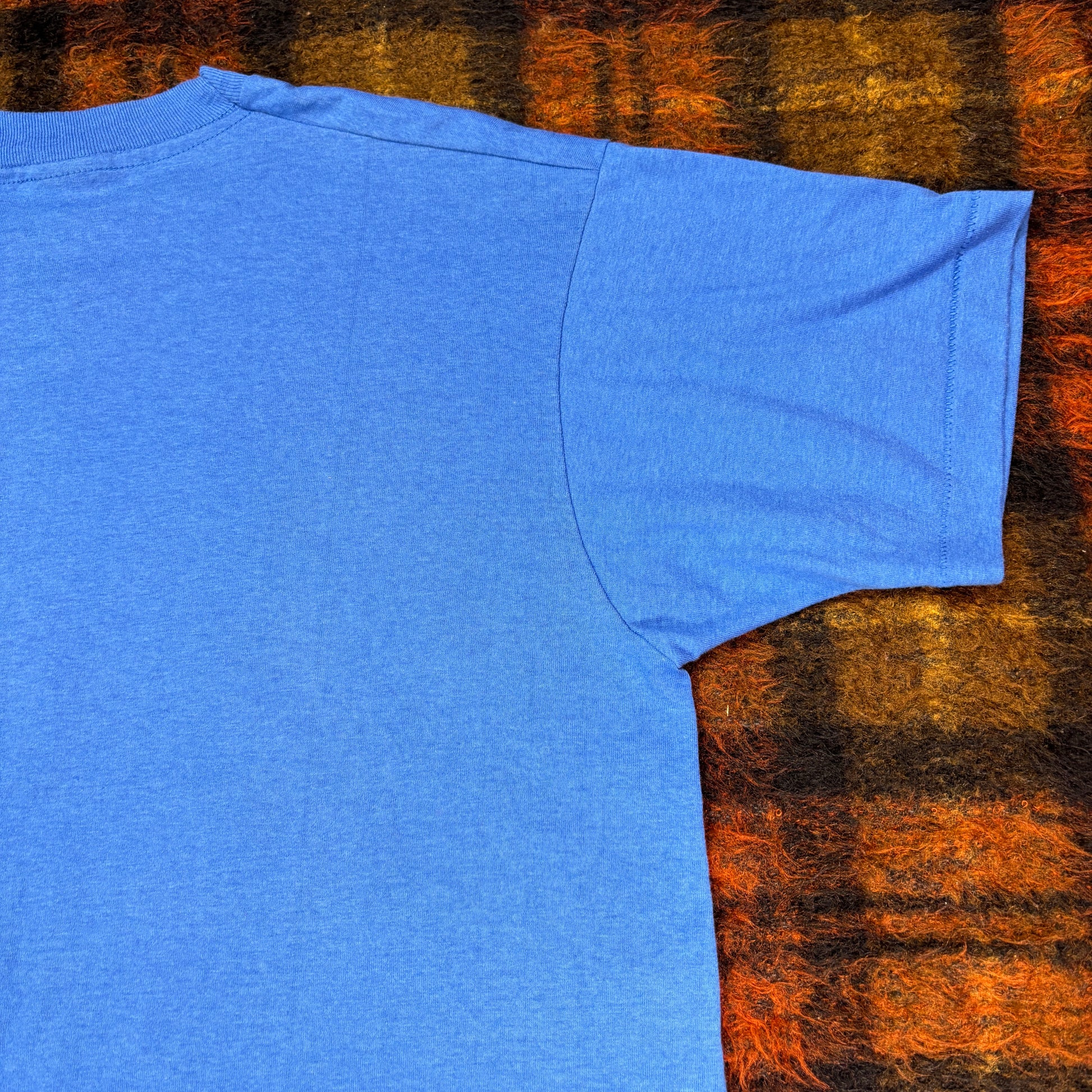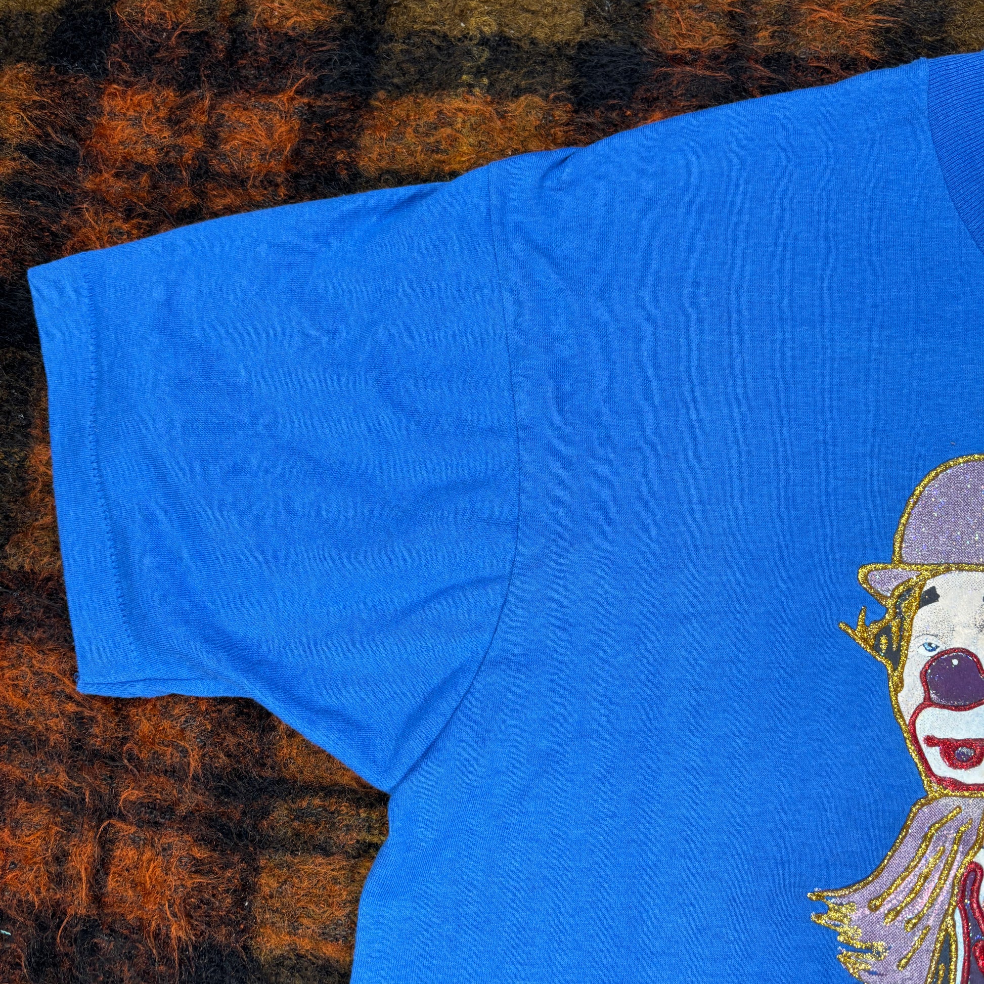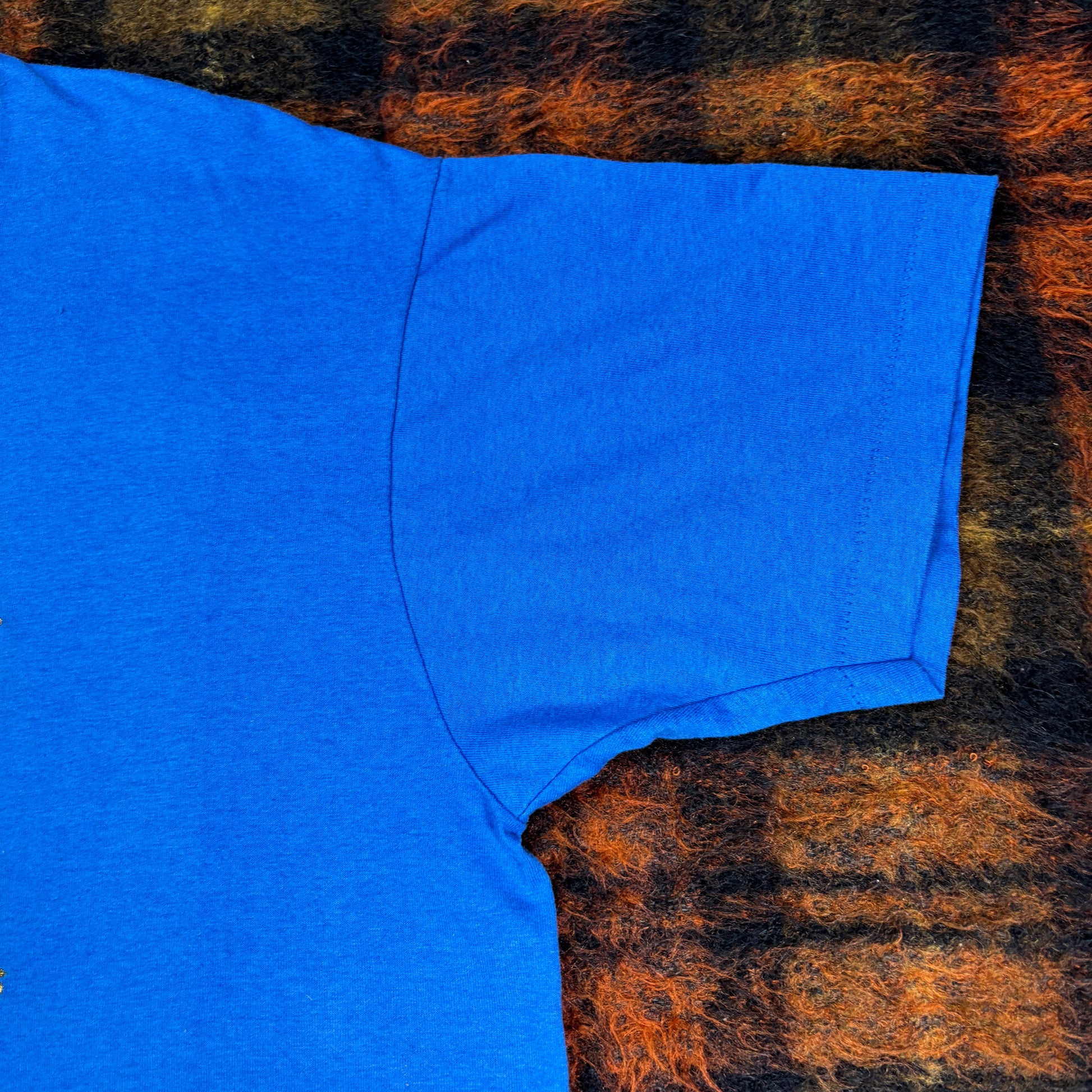 古着ならではのブルーの発色、USA製特有のしっかりとしたボディ、そして王道のボックスシルエット。クラウンモチーフは海外でも根強い人気があり、コレクションとしてもおすすめ。アートT、サーカス系、90sカルチャー好きにぜひ。