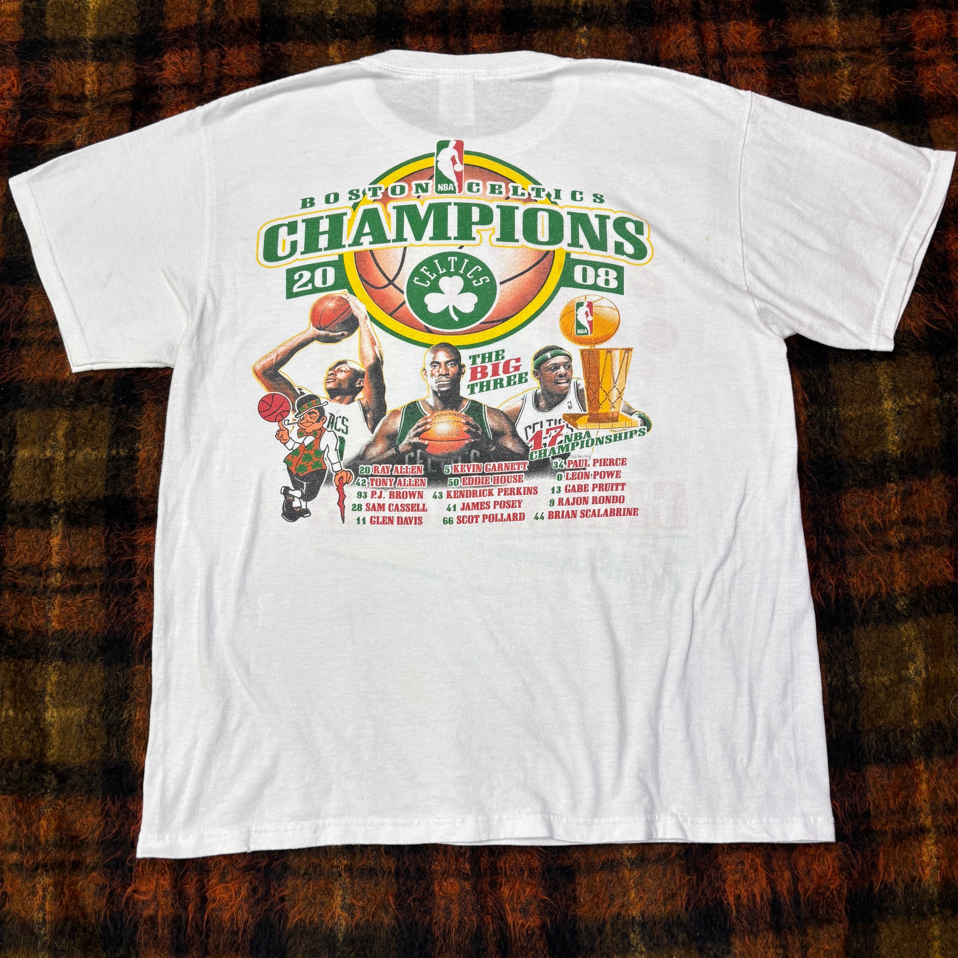 2008年、伝説のBIG3(ガーネット、レイ・アレン、ポール・ピアース)がNBAを制した記念T。ボストン・セルティックスファンの心を熱くするメモリアルな一枚。NBAファン必見。