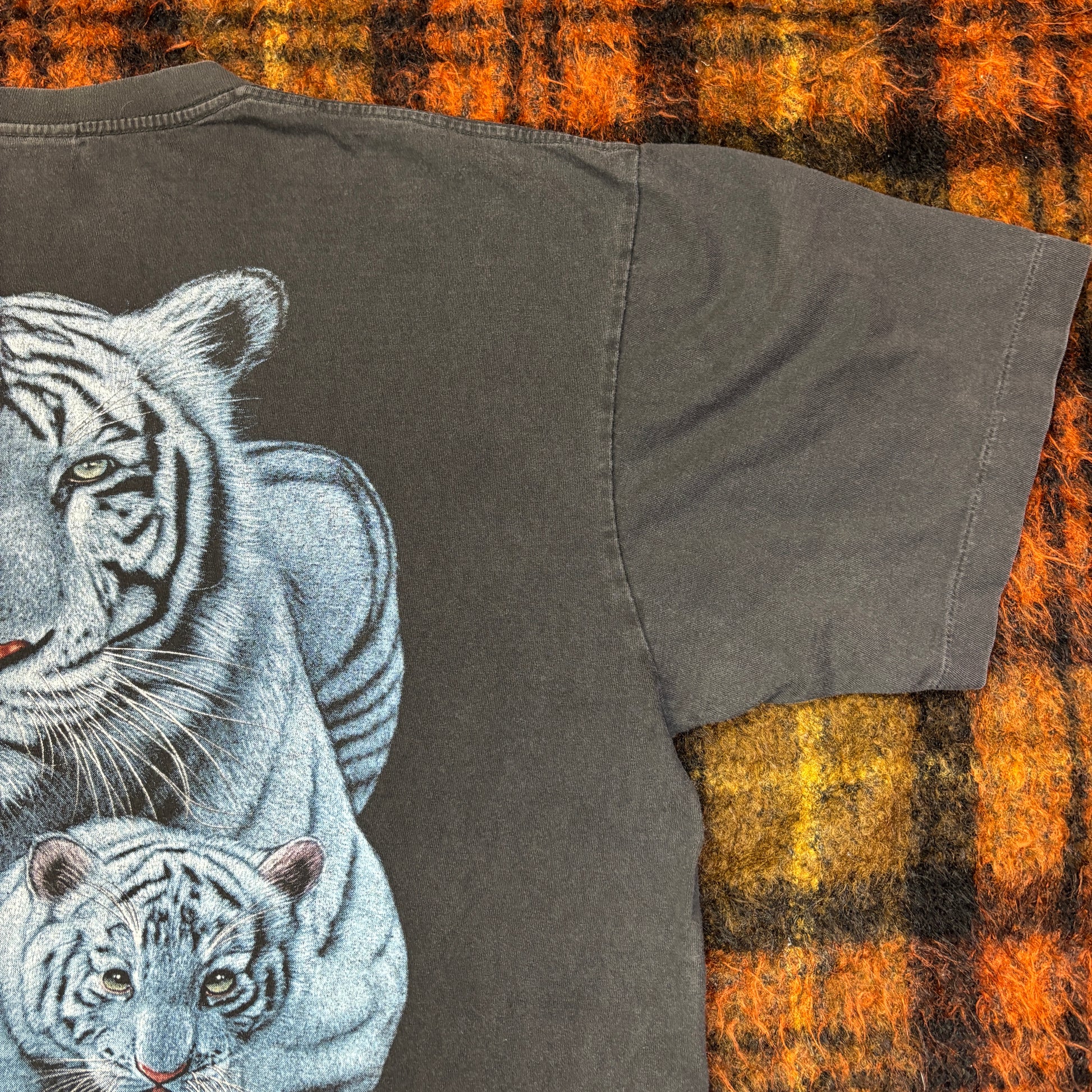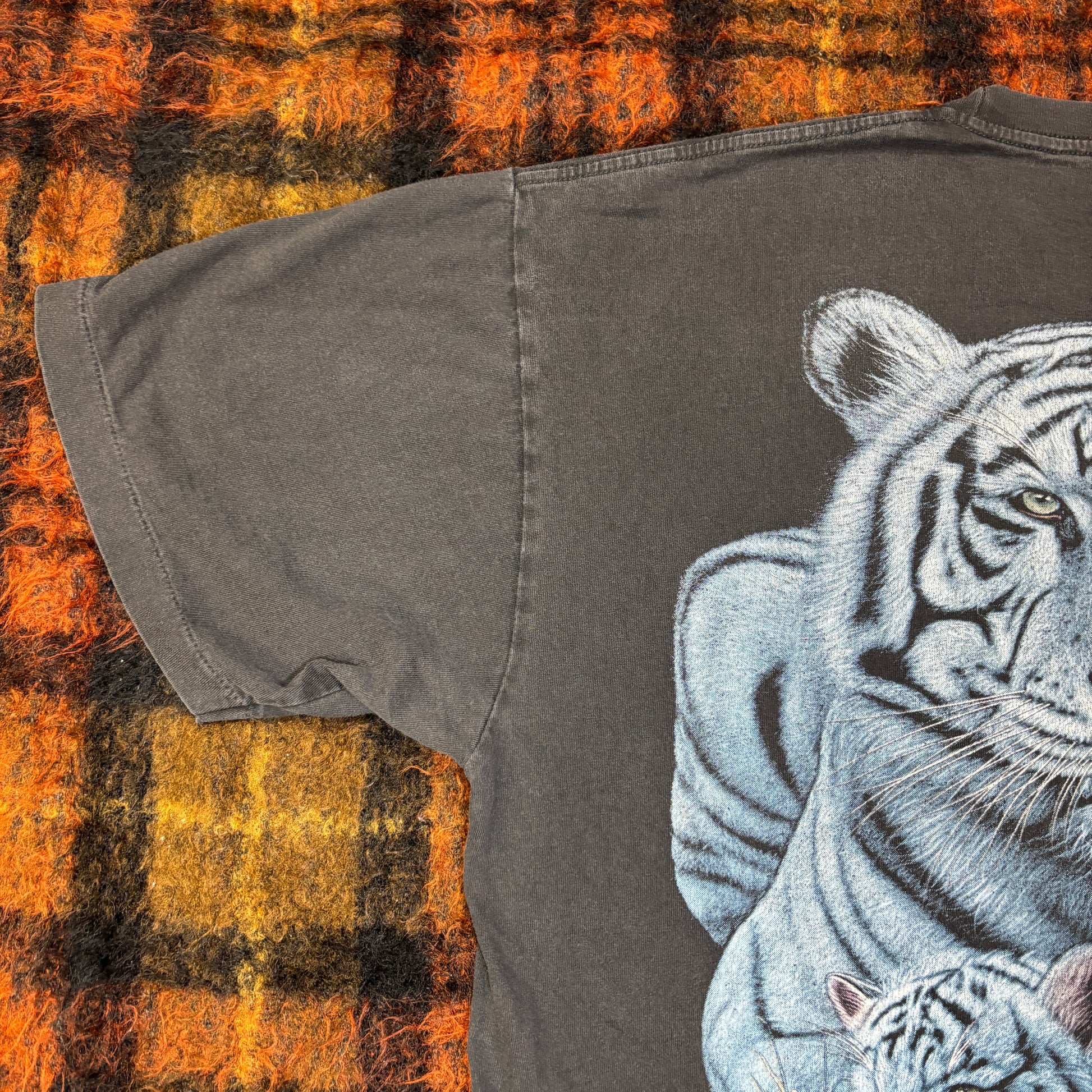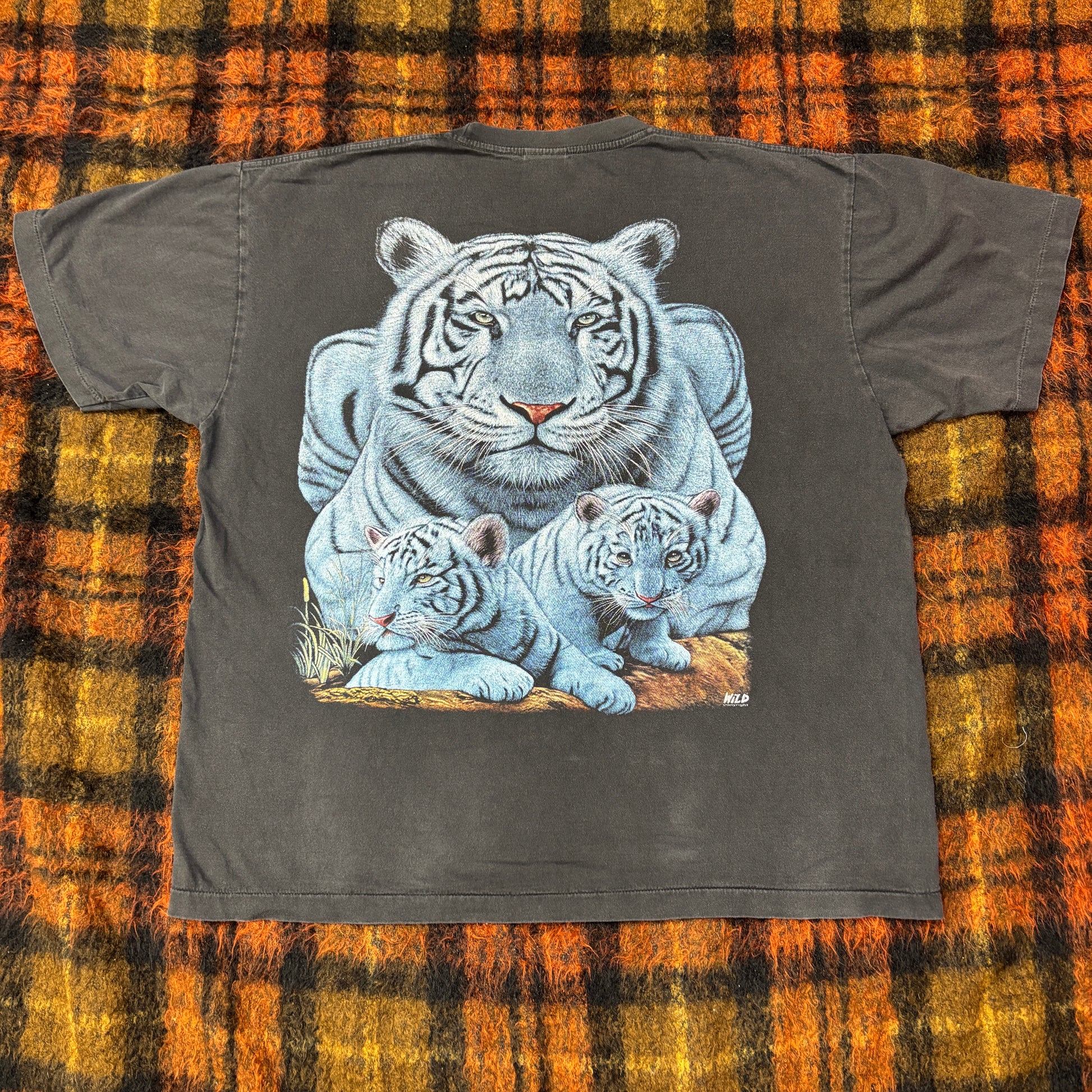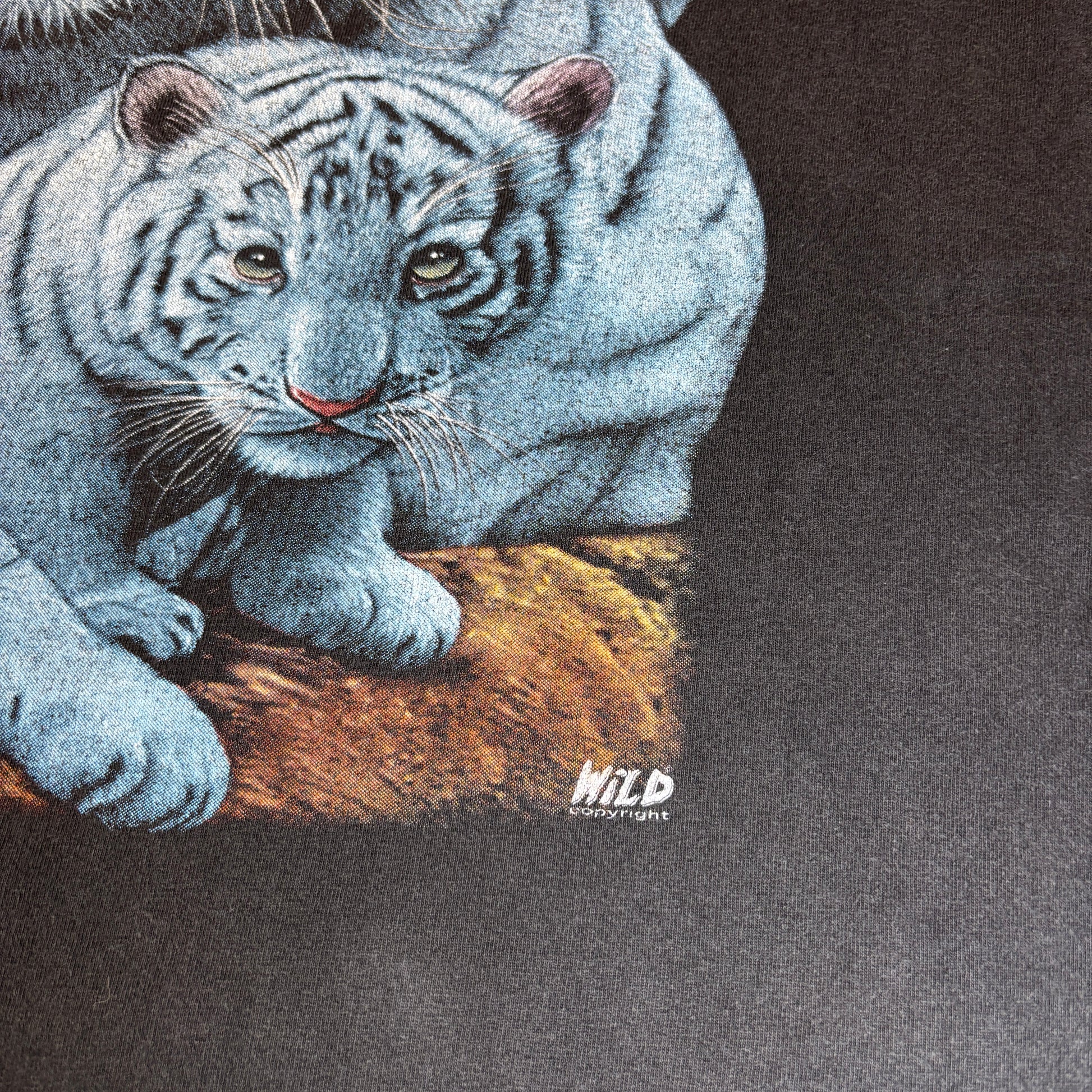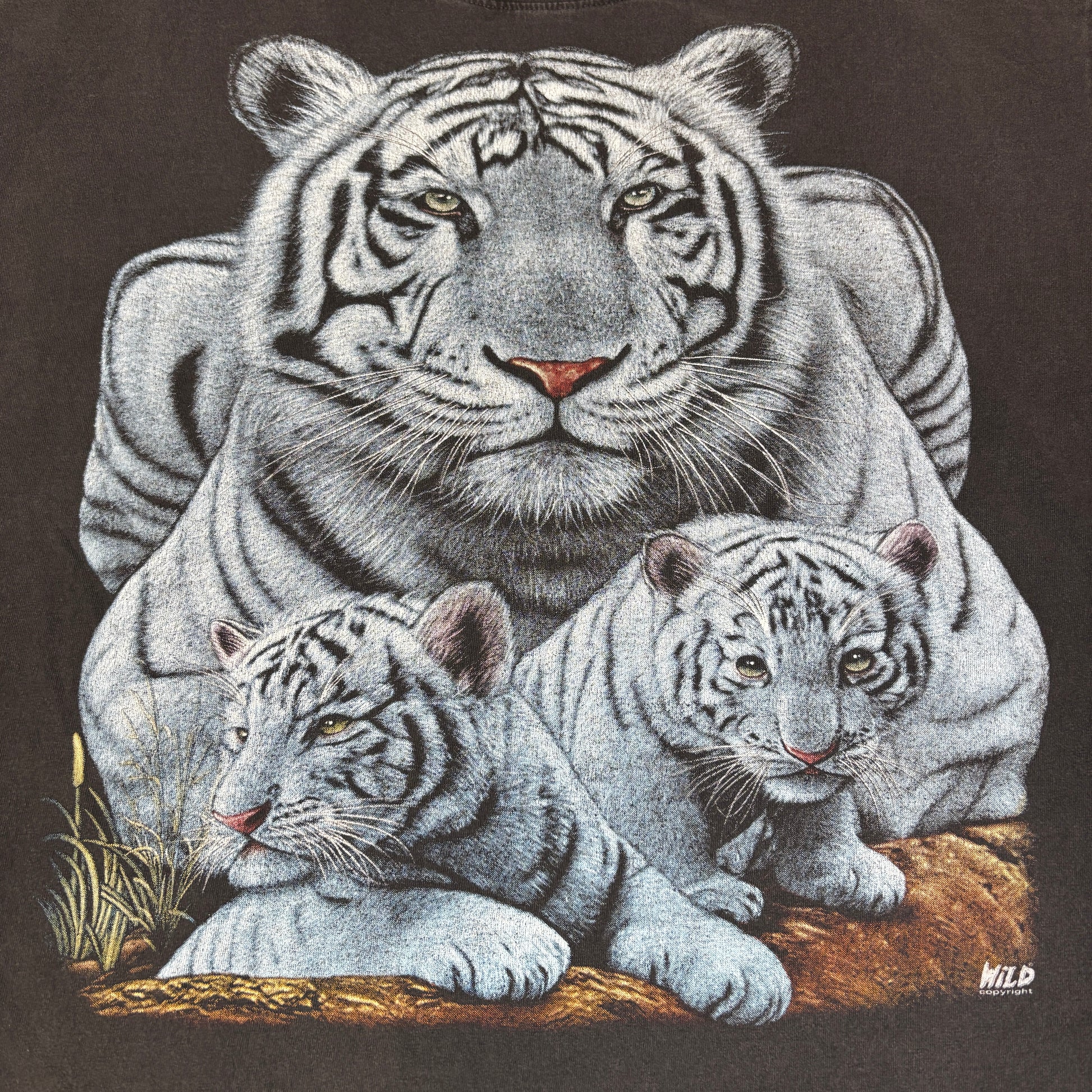 圧倒的な存在感。リアルなホワイトタイガーの親子が胸いっぱいに描かれたWILD LIFEシリーズ。アニマル好きはもちろん、インパクト重視のスタイルにハマる一枚です。