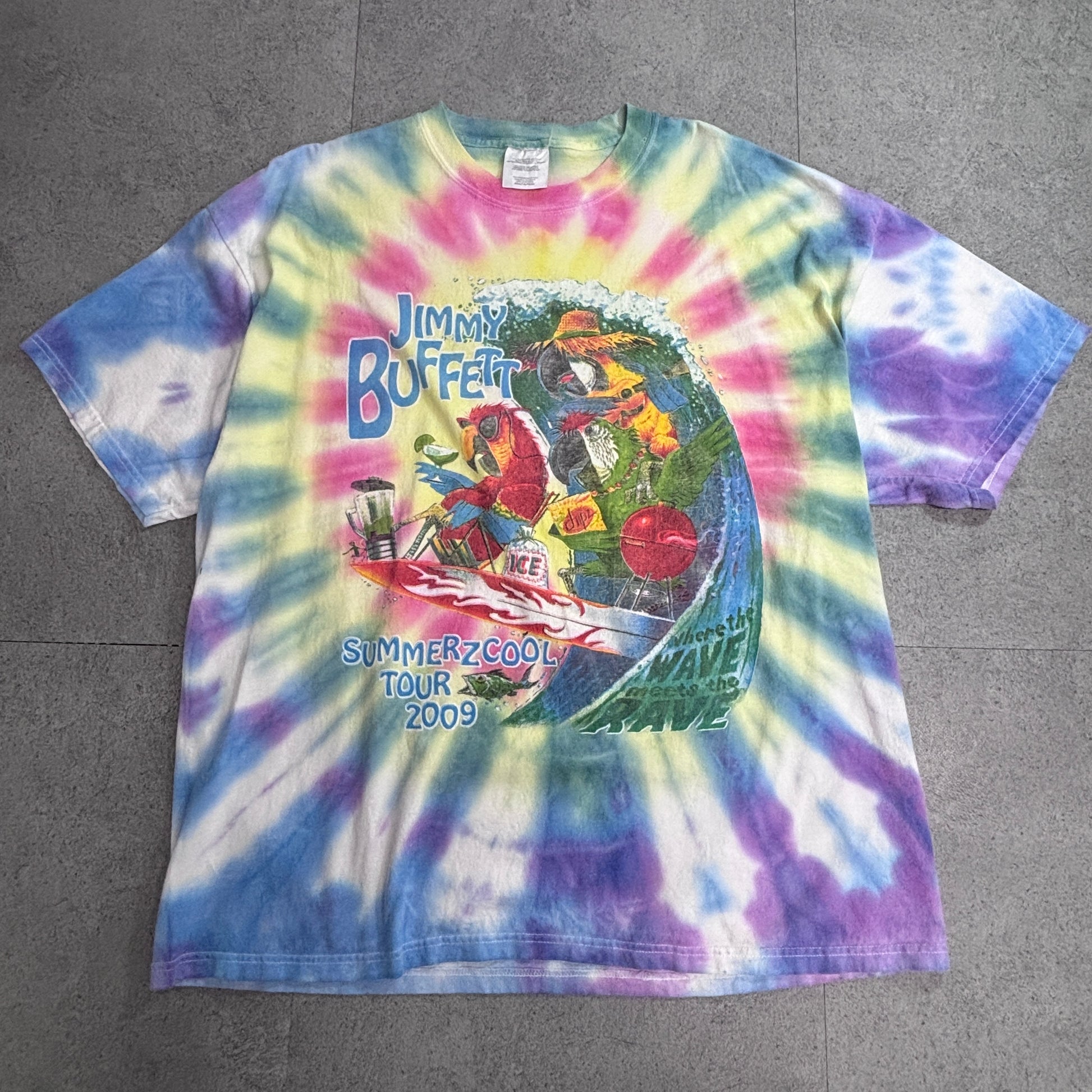 2009年の「Jimmy Buffett Summerzcool Tour」デザインが入った、インパクト抜群のタイダイTシャツです。
